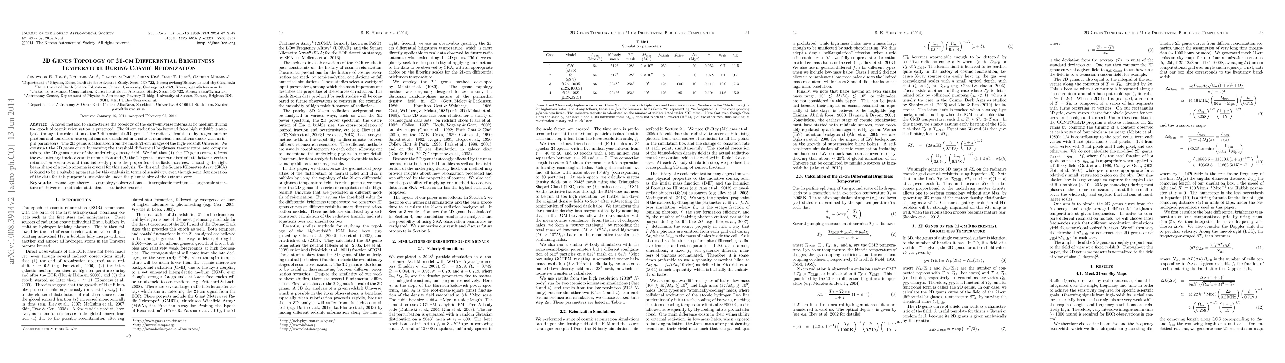 A novel method to characterize the topology of the early-universe intergalactic medium during the epoch of cosmic reionization is presented. The 21-cm radiation background from high redshift is analyzed through the calculation of the 2-dimensional (2D) genus. The radiative transfer of hydrogen-ionizing photons and ionization-rate equations are calculated in a suite of numerical simulations under various input parameters. The 2D genus is calculated from the mock 21-cm images of the high-redshift Universe. We construct the 2D genus curve by varying the threshold differential brightness temperature, and compare this to the 2D genus curve of the underlying density field. We find that (1) the 2D genus curve reflects the evolutionary track of cosmic reionization and (2) the 2D genus curve can discriminate between certain reionization scenarios and thus indirectly probe the properties of radiation-sources. Choosing the right beam shape of a radio antenna is crucial for this analysis. To this end, the Square Kilometre Array (SKA) is found to be a suitable apparatus for this analysis in terms of sensitivity, even though some deterioration of the data for this purpose is unavoidable under the planned size of the antenna core.