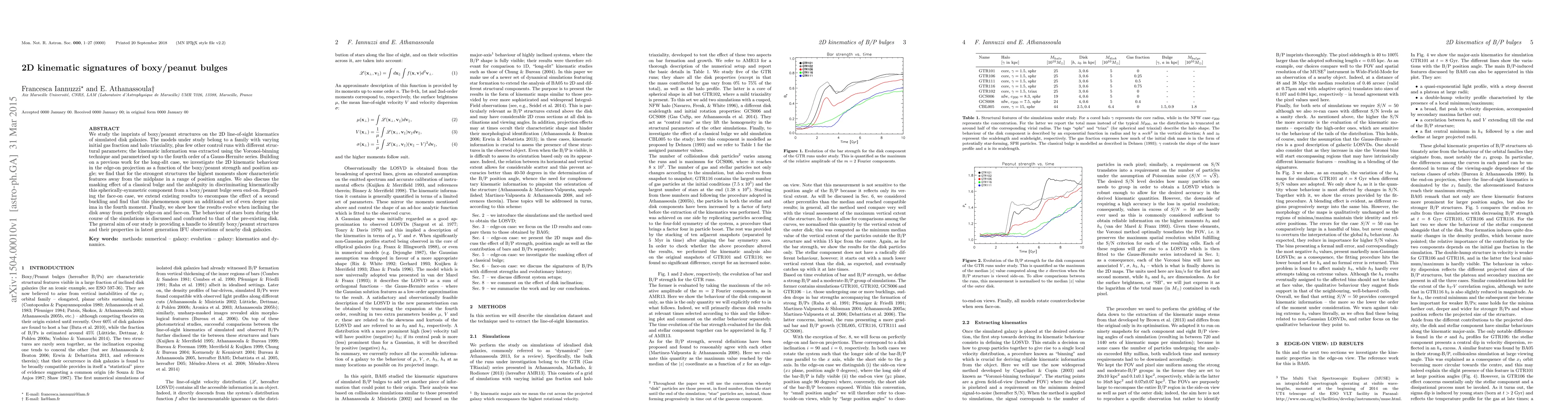 This study analyzes 2D line-of-sight kinematics of simulated disk galaxies with boxy/peanut structures using Voronoi-binning and Gauss-Hermite series. Key findings include characteristic high-moment features at varying position angles for strong structures, masking effects of classical bulges, and additional kinematic signatures from second buckling in face-on views. The research aims to aid identification of boxy/peanut structures in nearby disk galaxy observations.