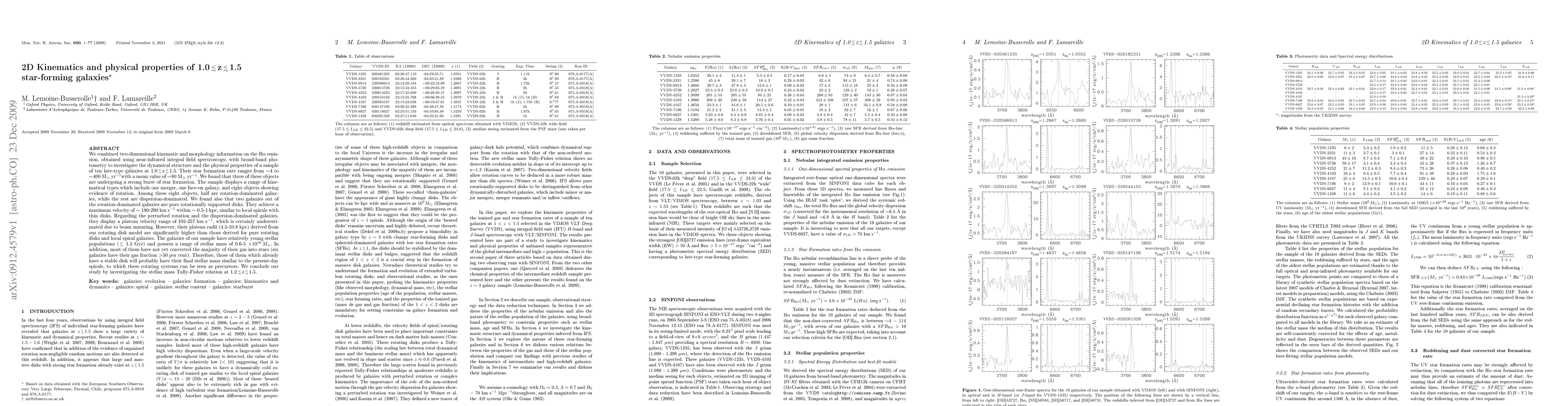 This study combines two-dimensional kinematics and morphology from Halpha emission with broad-band photometry to analyze the dynamical structure and physical properties of ten star-forming galaxies at redshifts 1.0 < z < 1.5. The galaxies exhibit a range of kinematical types, with half showing rotation-dominated dynamics and the other half dispersion-dominated, suggesting they are precursors to present-day spirals.