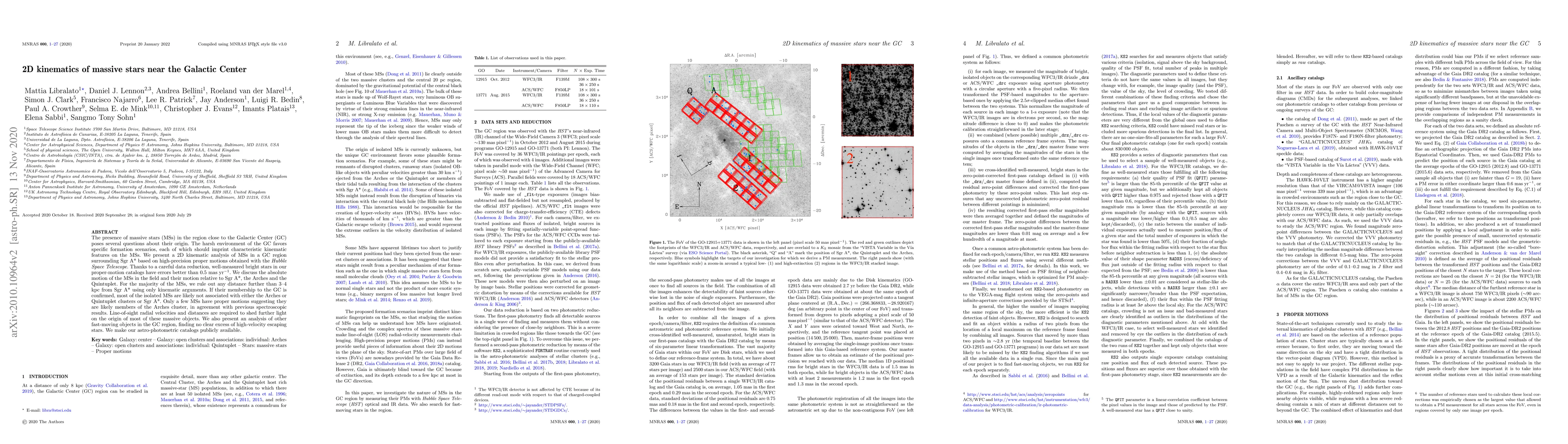 A 2D kinematic analysis of massive stars near the Galactic Center reveals that most are likely not associated with nearby clusters or Sgr A*, requiring further study to determine their origin.