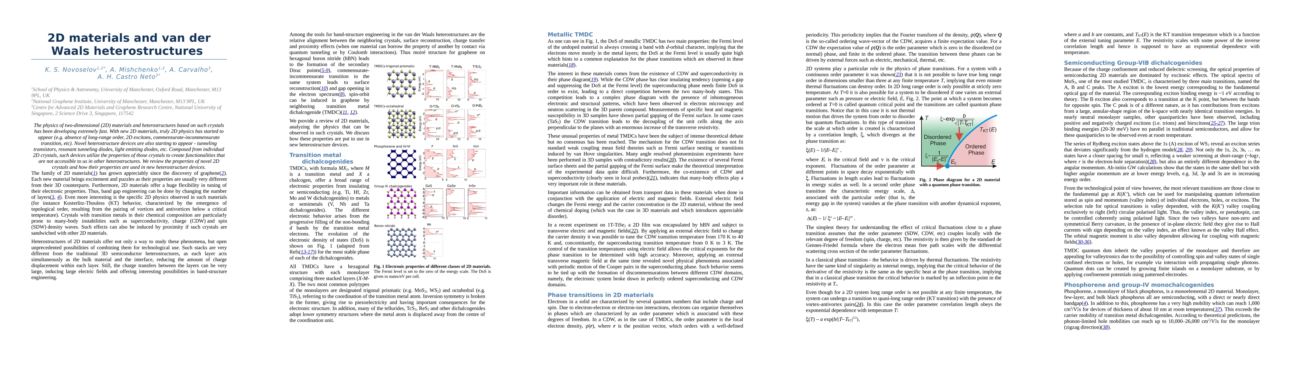 This paper reviews the development of 2D materials and van der Waals heterostructures, highlighting their unique properties and applications in novel devices such as tunneling transistors and light emitting diodes.