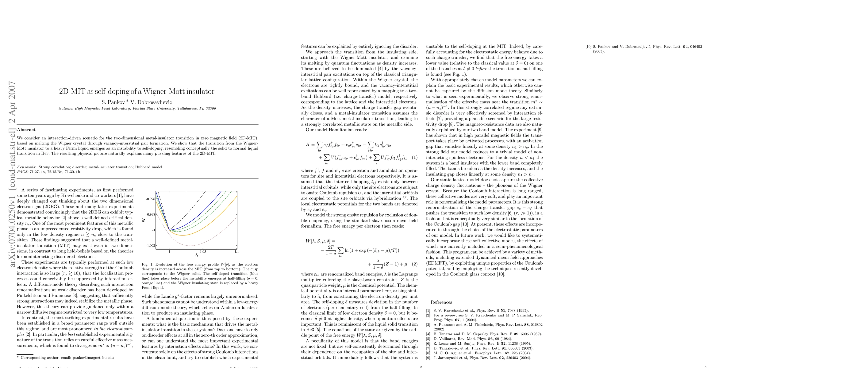 The paper introduces a two-band Hubbard model to describe the 2D-MIT as self-doping of a Wigner-Mott insulator, providing a new perspective on the transition mechanism.