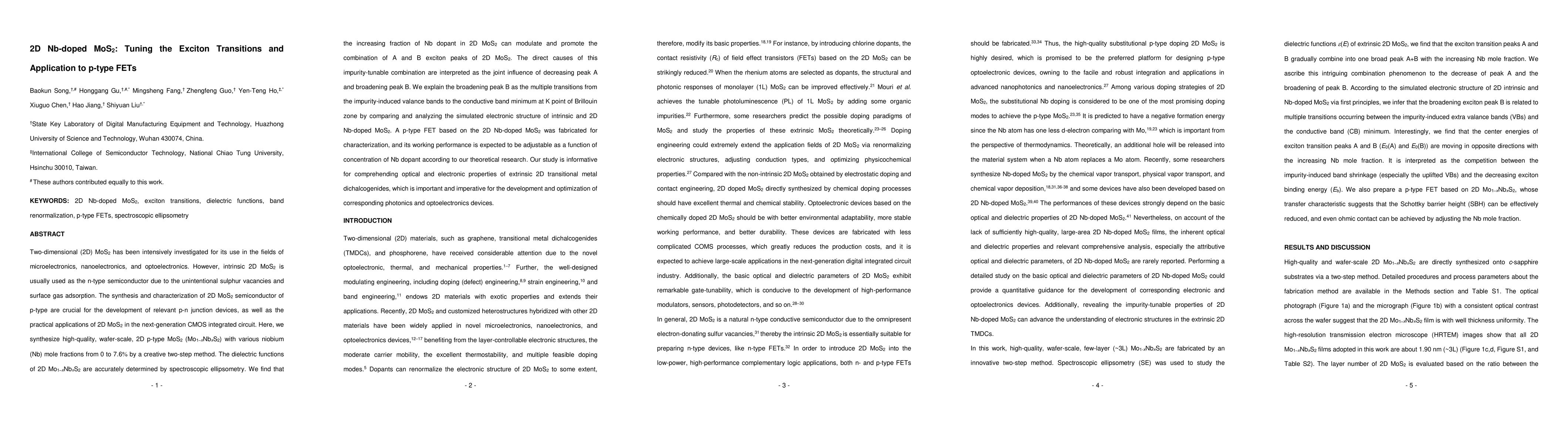 This paper synthesizes high-quality, wafer-scale 2D p-type MoS$_2$ doped with niobium (Nb) and explores its exciton transitions and application in p-type FETs. The study finds that Nb doping modulates the exciton peaks, broadening peak B due to impurity-induced transitions, and demonstrates the potential for tunable FET performance based on Nb concentration.