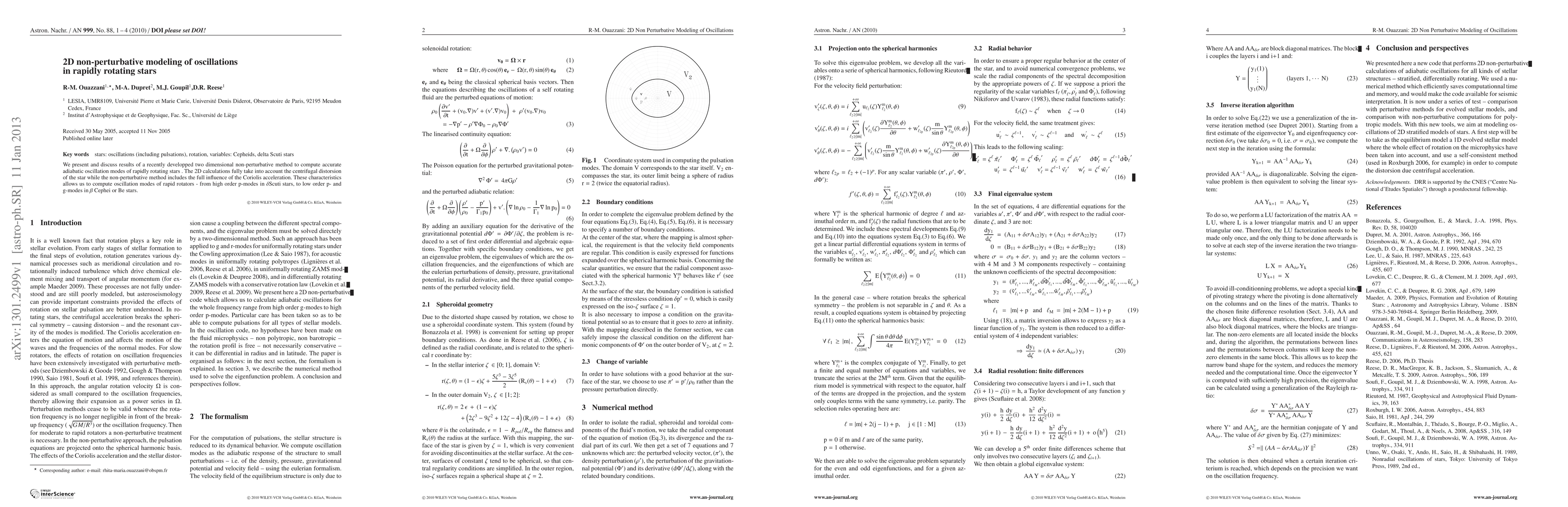 We present and discuss results of a recently developped two dimensional non-perturbative method to compute accurate adiabatic oscillation modes of rapidly rotating stars . The 2D calculations fully take into account the centrifugal distorsion of the star while the non-perturbative method includes the full influence of the Coriolis acceleration. These characteristics allows us to compute oscillation modes of rapid rotators - from high order p-modes in $\delta$Scuti stars, to low order p- and g-modes in $\beta$ Cephei or Be stars.