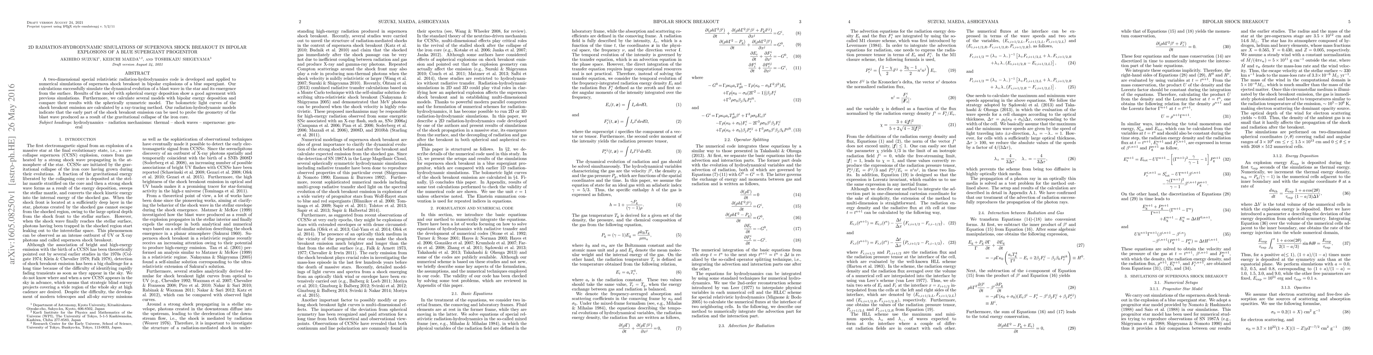 This paper develops a two-dimensional special relativistic radiation-hydrodynamics code to simulate supernova shock breakout in bipolar explosions from a blue supergiant progenitor. The study compares the dynamics of blast waves and their emergence from the star, finding that the early shock breakout emission can reveal the geometry of the blast wave.