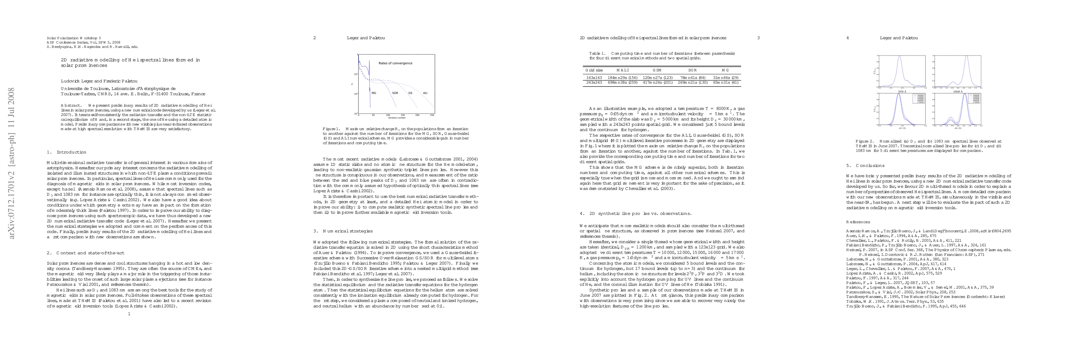 This paper introduces a new 2D radiative modelling technique for He I spectral lines in solar prominences, showing promising preliminary results that align well with high-resolution observations from THeMIS. The model treats self-consistently radiation transfer and non-LTE statistical equilibrium for hydrogen and helium.