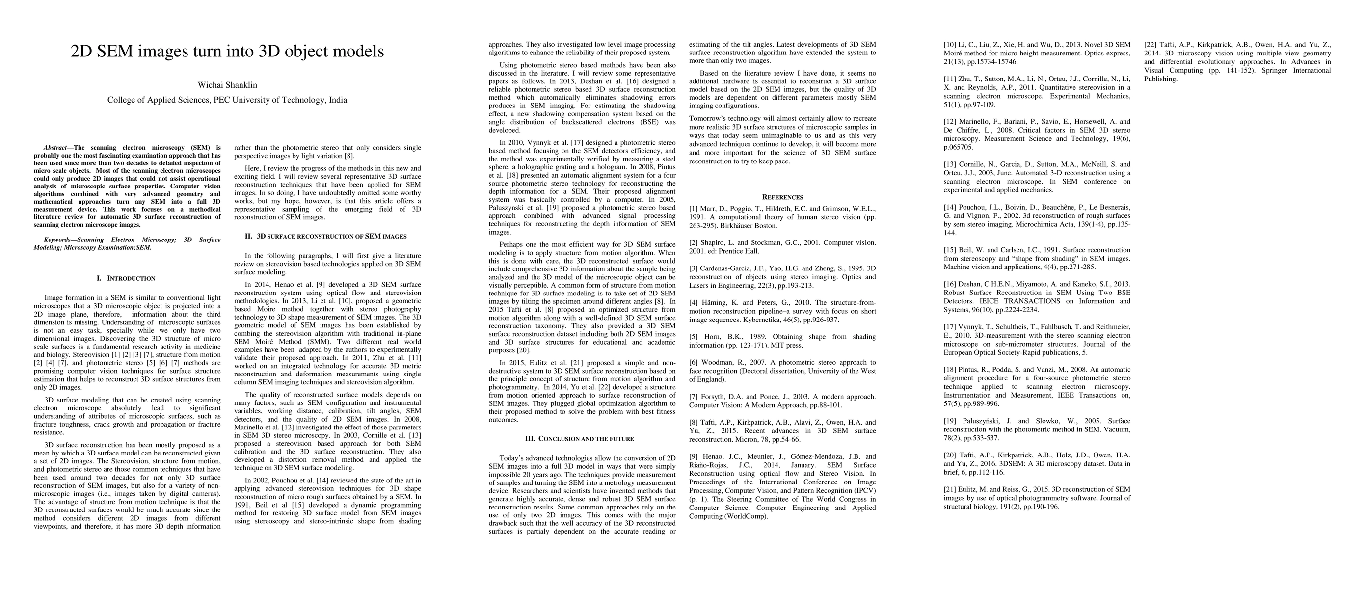 Researchers developed a method to convert 2D SEM images into 3D object models using computer vision algorithms and advanced geometry techniques, enabling detailed analysis of microscopic surface properties.