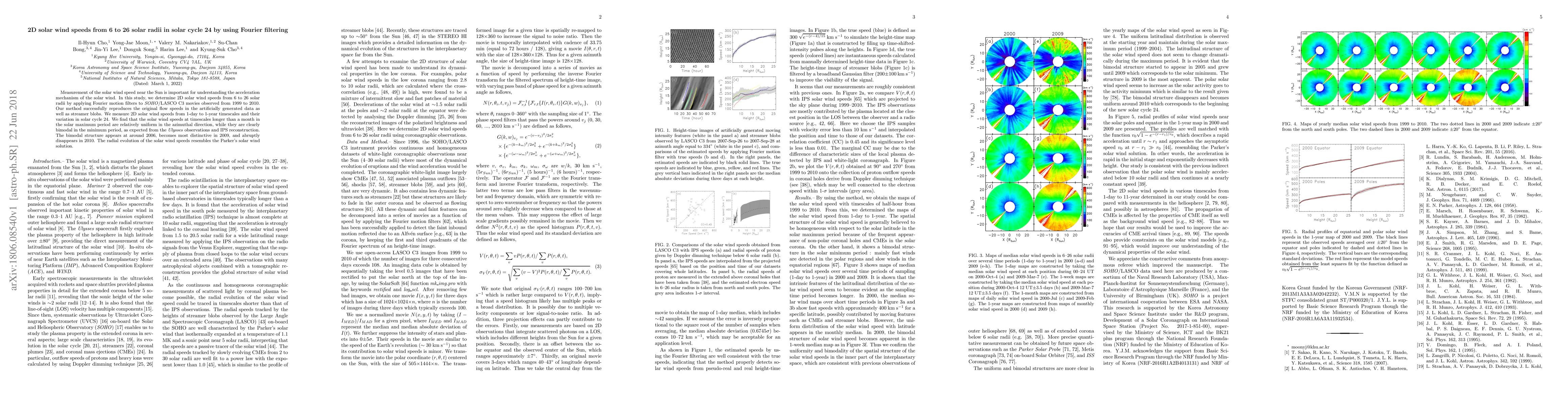 This study measures 2D solar wind speeds from 6 to 26 solar radii using Fourier filtering on \textit{SOHO}/LASCO C3 data, revealing uniform speeds in solar maximum and bimodal speeds in minimum, aligning with \textit{Ulysses} observations. The bimodal structure is most distinct in 2009 and vanishes by 2010.