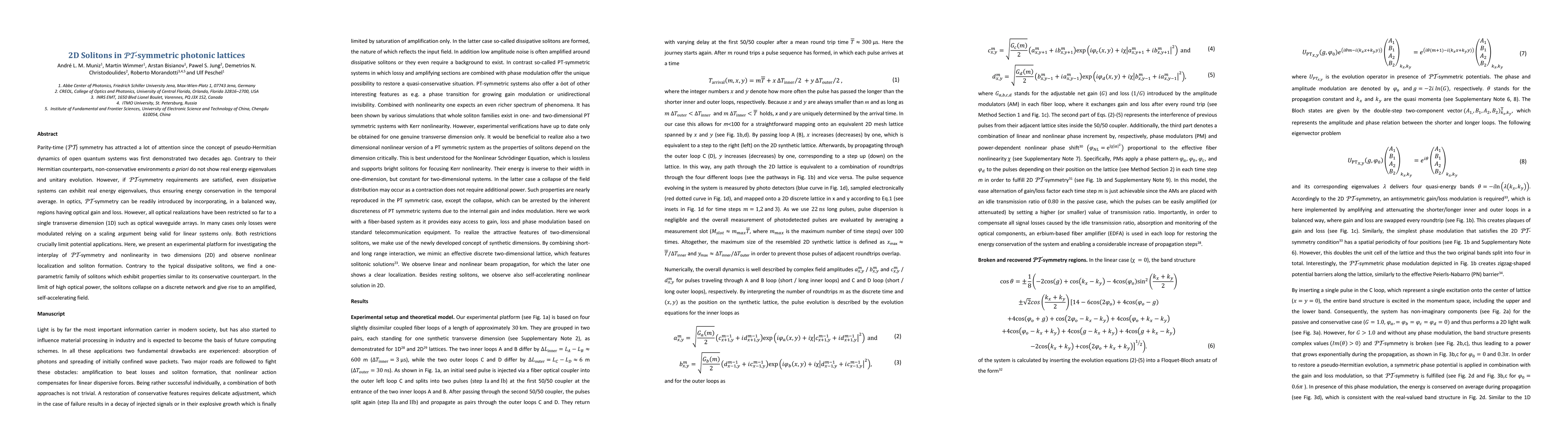 Parity-time (PT) symmetry has attracted a lot of attention since the concept of pseudo-Hermitian dynamics of open quantum systems was first demonstrated two decades ago. Contrary to their Hermitian counterparts, non-conservative environments a priori do not show real energy eigenvalues and unitary evolution. However, if PT-symmetry requirements are satisfied, even dissipative systems can exhibit real energy eigenvalues, thus ensuring energy conservation in the temporal average. In optics, PT-symmetry can be readily introduced by incorporating, in a balanced way, regions having optical gain and loss. However, all optical realizations have been restricted so far to a single transverse dimension (1D) such as optical waveguide arrays. In many cases, only losses were modulated relying on a scaling argument being valid for linear systems only. Both restrictions crucially limit potential applications. Here, we present an experimental platform for investigating the interplay of PT-symmetry and nonlinearity in two dimensions (2D) and observe nonlinear localization and soliton formation. Contrary to the typical dissipative solitons, we find a one-parametric family of solitons which exhibit properties similar to its conservative counterpart. In the limit of high optical power, the solitons collapse on a discrete network and give rise to an amplified, self-accelerating field.