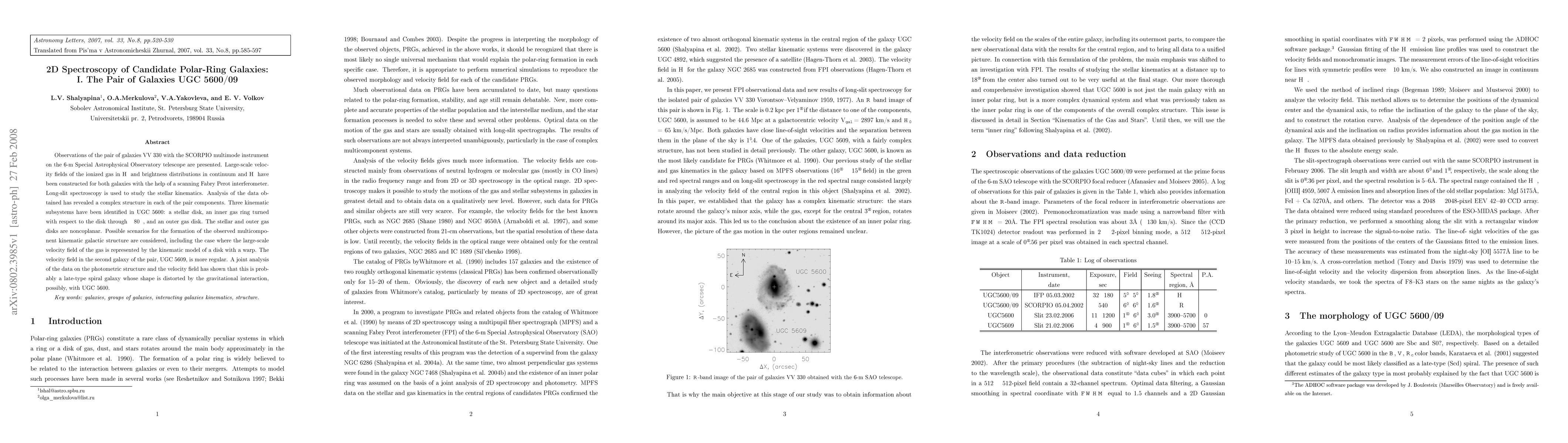 Observations of the pair of galaxies VV 330 with the SCORPIO multimode instrument on the 6-m Special Astrophysical Observatory telescope are presented. Large-scale velocity fields of the ionized gas in H-alfa and brightness distributions in continuum and H-alfa have been constructed for both galaxies with the help of a scanning Fabry Perot interferometer. Long-slit spectroscopy is used to study the stellar kinematics. Analysis of the data obtained has revealed a complex structure in each of the pair components. Three kinematic subsystems have been identified in UGC 5600: a stellar disk, an inner gas ring turned with respect to the disk through ~80degrees, and an outer gas disk. The stellar and outer gas disks are noncoplanar. Possible scenarios for the formation of the observed multicomponent kinematic galactic structure are considered, including the case where the large-scale velocity field of the gas is represented by the kinematic model of a disk with a warp. The velocity field in the second galaxy of the pair, UGC 5609, is more regular. A joint analysis of the data on the photometric structure and the velocity field has shown that this is probably a late-type spiral galaxy whose shape is distorted by the gravitational interaction, possibly, with UGC 5600.