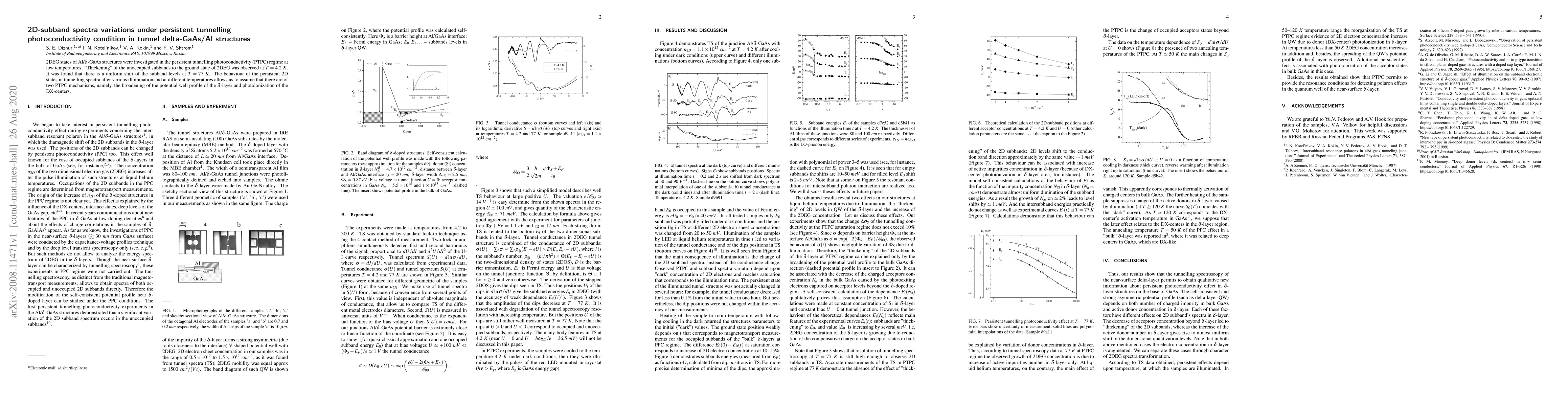 This study investigates 2D electron gas (2DEG) states in tunnel delta-GaAs/Al structures under persistent tunneling photoconductivity (PTPC) at low temperatures, revealing "thickening" of unoccupied subbands and a uniform shift in subband levels at higher temperatures. The findings suggest two PTPC mechanisms: potential well profile broadening and photoionization of DX-centers.
