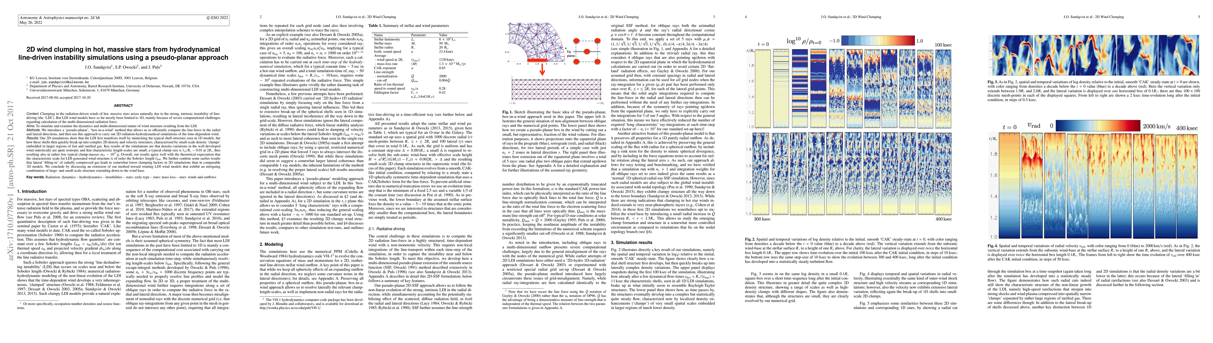 This paper investigates the dynamics and multi-dimensional nature of wind clumping in hot, massive stars using 2D hydrodynamical simulations based on the line-driven instability (LDI). The study employs a pseudo-planar approach to efficiently compute the line-force, revealing complex 2D density and velocity structures characterized by small-scale density clumps.