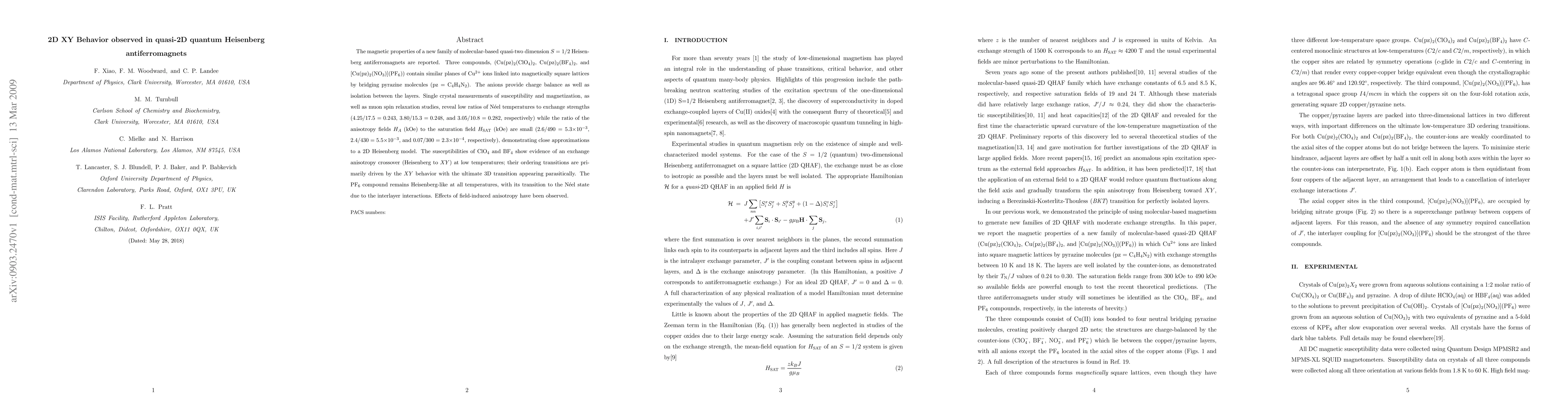 Researchers discovered a new family of molecular-based materials that exhibit 2D XY behavior in quasi-2D quantum Heisenberg antiferromagnets, with compounds showing exchange anisotropy crossover from Heisenberg to XY at low temperatures.