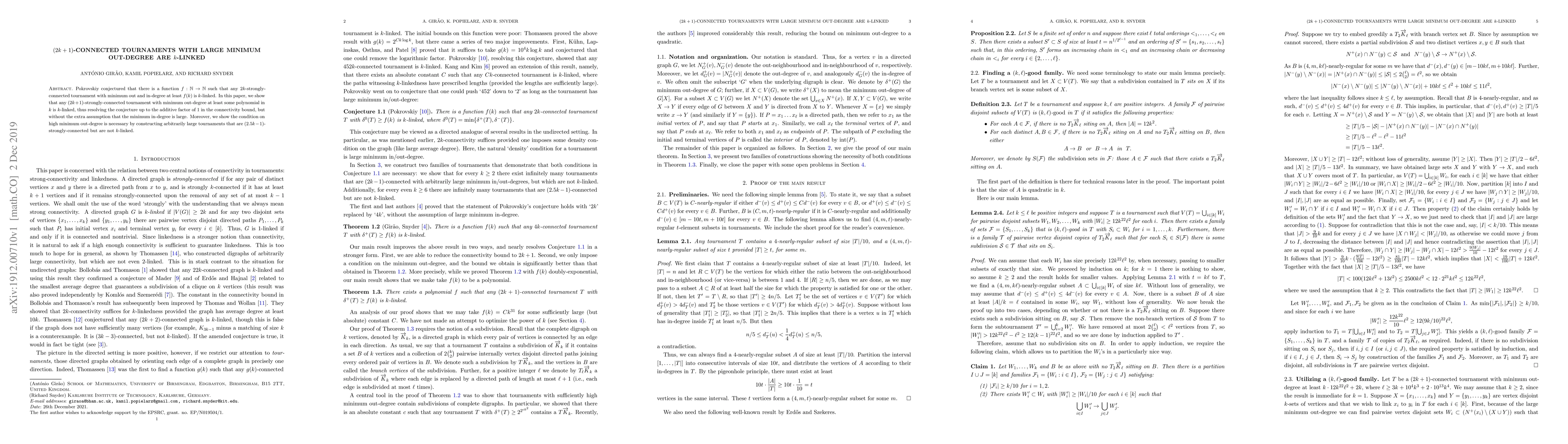 This paper resolves Pokrovskiy's conjecture by proving that any $(2k+1)$-strongly-connected tournament with a sufficiently large minimum out-degree is $k$-linked, without requiring a large minimum in-degree. It also demonstrates the necessity of the high minimum out-degree condition through counterexamples.