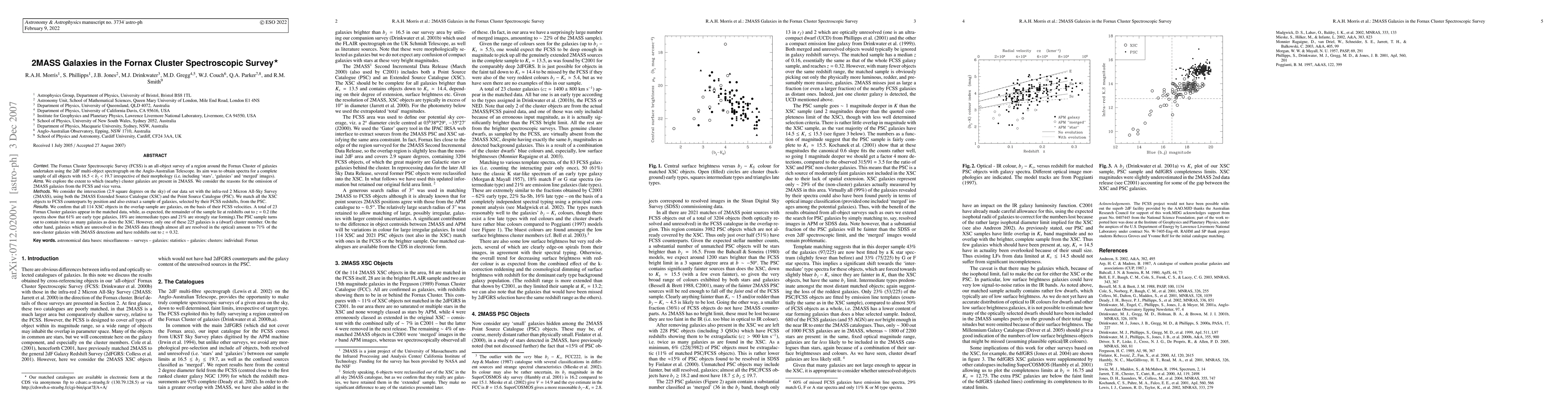 The Fornax Cluster Spectroscopic Survey (FCSS) obtained spectra for all objects in the Fornax Cluster region, revealing that 23 cluster galaxies are present in the 2MASS Extended Source Catalogue (XSC). The Point Source Catalogue (PSC) contains more galaxies but only one is a cluster member, with many unresolved galaxies in 2MASS data.
