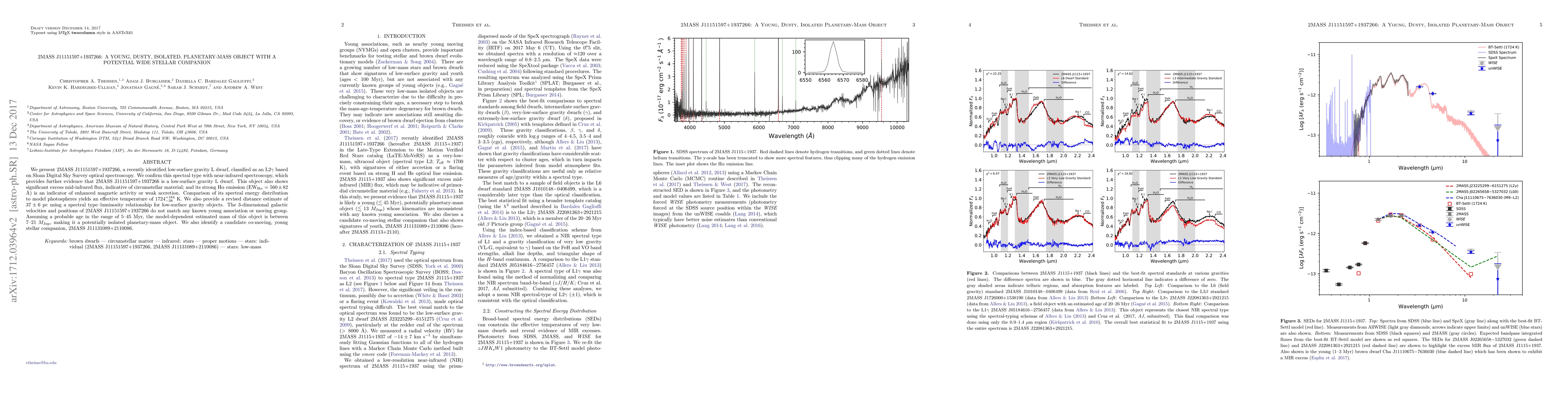 We present 2MASS J11151597+1937266, a recently identified low-surface gravity L dwarf, classified as an L2$\gamma$ based on Sloan Digital Sky Survey optical spectroscopy. We confirm this spectral type with near-infrared spectroscopy, which provides further evidence that 2MASS J11151597+1937266 is a low-surface gravity L dwarf. This object also shows significant excess mid-infrared flux, indicative of circumstellar material; and its strong H$\alpha$ emission (EW$_{\mathrm{H}\alpha}=560\pm82$ \AA) is an indicator of enhanced magnetic activity or weak accretion. Comparison of its spectral energy distribution to model photospheres yields an effective temperature of $1724^{+184}_{-38}$ K. We also provide a revised distance estimate of $37\pm6$ pc using a spectral type-luminosity relationship for low-surface gravity objects. The 3-dimensional galactic velocities and positions of 2MASS J11151597+1937266 do not match any known young association or moving group. Assuming a probable age in the range of 5-45 Myr, the model-dependent estimated mass of this object is between 7-21 $M_\mathrm{Jup}$, making it a potentially isolated planetary-mass object. We also identify a candidate co-moving, young stellar companion, 2MASS J11131089+2110086.