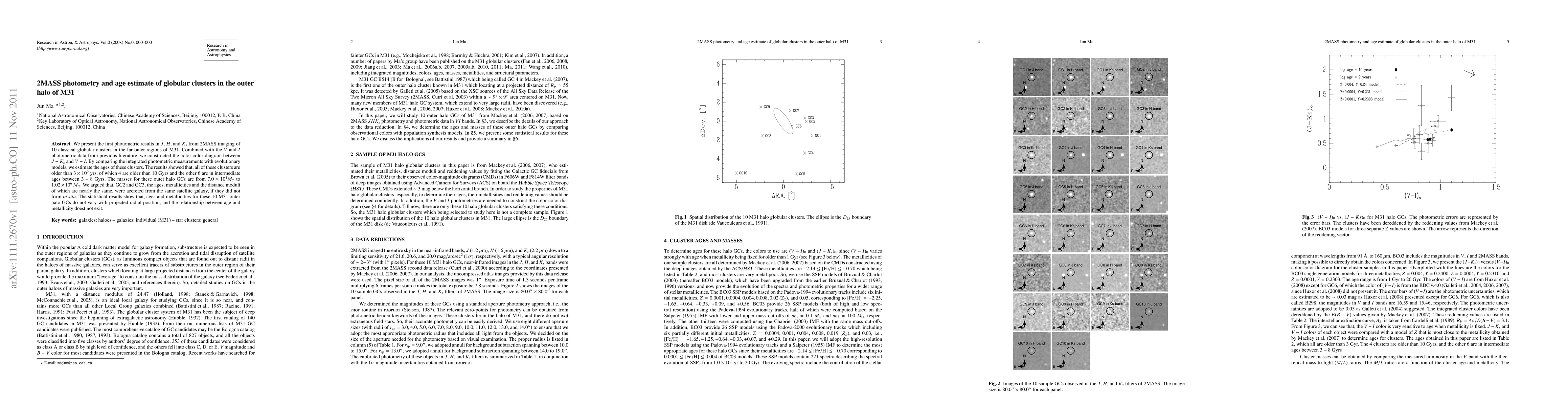 We present the first photometric results in J, H, and K_s from 2MASS imaging of 10 classical globular clusters in the far outer regions of M31. Combined with the V and I photometric data from previous literature, we constructed the color-color diagram between J-K_s and V-I. By comparing the integrated photometric measurements with evolutionary models, we estimate the ages of these clusters. The results showed that, all of these clusters are older than $3\times 10^9$ yrs, of which 4 are older than 10 Gyrs and the other 6 are in intermediate ages between 3-8 Gyrs. The masses for these outer halo GCs are from $7.0\times 10^4 M_sun$ to $1.02\times 10^6 M_sun$. We argued that, GC2 and GC3, the ages, metallicities and the distance moduli of which are nearly the same, were accreted from the same satellite galaxy, if they did not form {\it in situ}. The statistical results show that, ages and metallicities for these 10 M31 outer halo GCs do not vary with projected radial position, and the relationship between age and metallicity doest not exit.