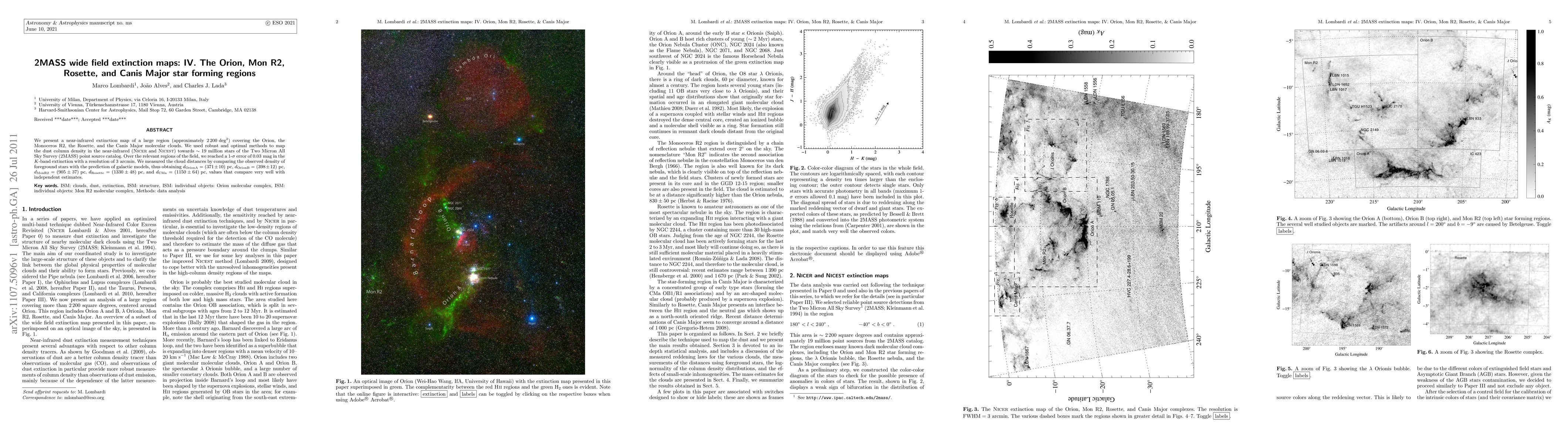 This paper presents a near-infrared extinction map of four star-forming regions using the Two Micron All Sky Survey (2MASS) data, achieving a 1-sigma error of 0.03 mag in the K-band with a resolution of 3 arcmin. The distances to the Orion, Mon R2, Rosette, and Canis Major molecular clouds were determined, yielding values consistent with previous estimates.