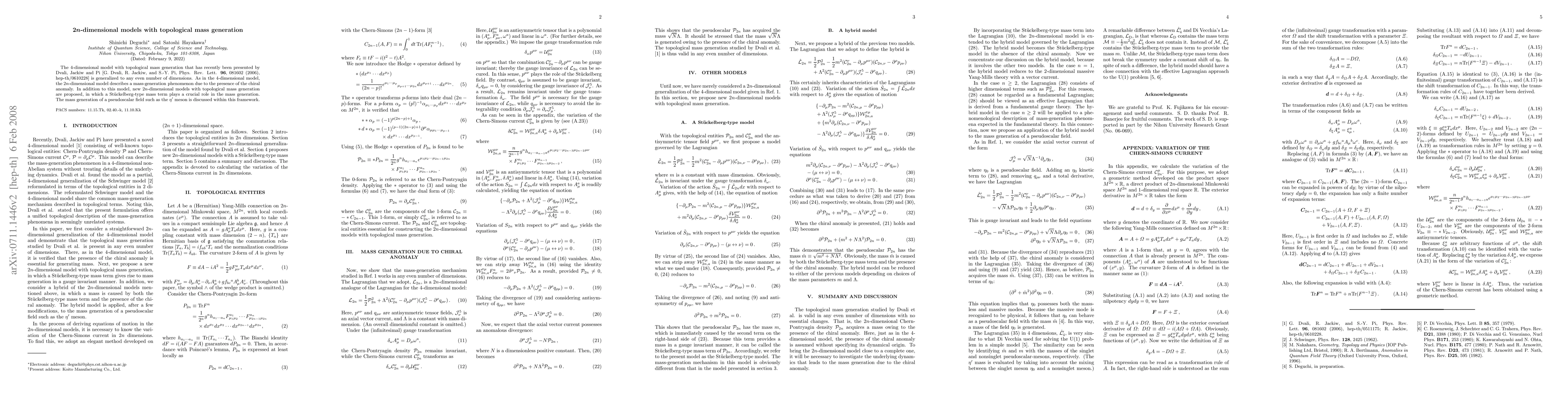 This paper generalizes a 4-dimensional topological mass generation model to any even-dimensional space, highlighting the role of chiral anomaly and introducing new models with Stueckelberg-type mass terms. The framework is applied to discuss mass generation for pseudoscalar fields like the eta-prime meson.
