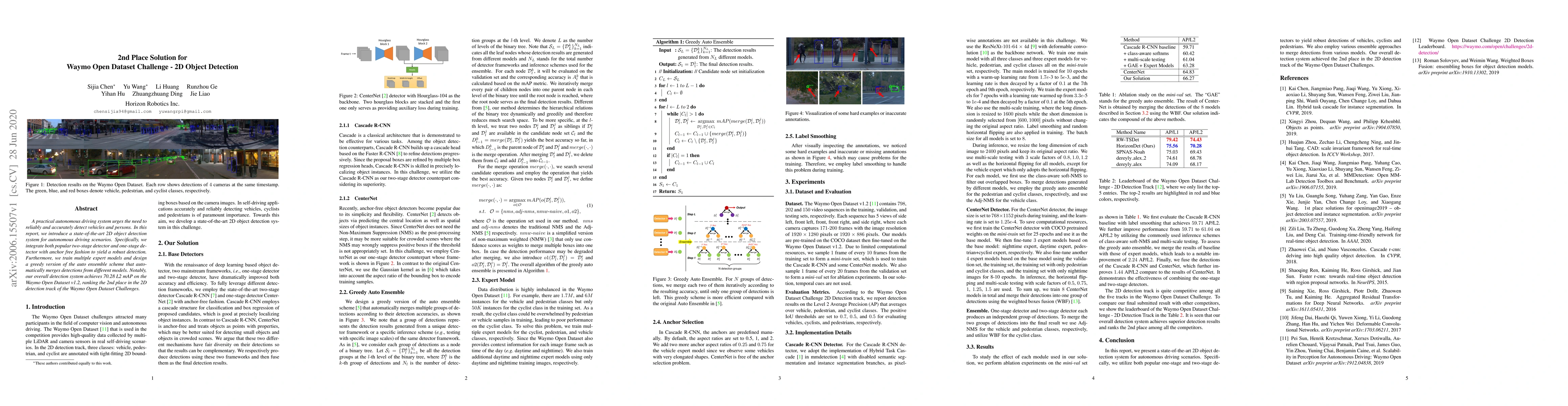 A practical autonomous driving system urges the need to reliably and accurately detect vehicles and persons. In this report, we introduce a state-of-the-art 2D object detection system for autonomous driving scenarios. Specifically, we integrate both popular two-stage detector and one-stage detector with anchor free fashion to yield a robust detection. Furthermore, we train multiple expert models and design a greedy version of the auto ensemble scheme that automatically merges detections from different models. Notably, our overall detection system achieves 70.28 L2 mAP on the Waymo Open Dataset v1.2, ranking the 2nd place in the 2D detection track of the Waymo Open Dataset Challenges.