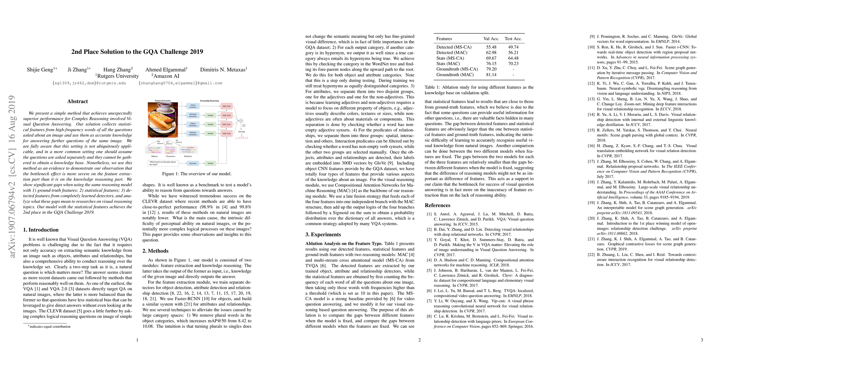 This paper presents a method for achieving superior performance in Complex Reasoning for Visual Question Answering by collecting statistical features from high-frequency words in questions about an image. The approach achieves 2nd place in the GQA Challenge 2019, highlighting gaps between different feature extraction methods and knowledge reasoning parts.