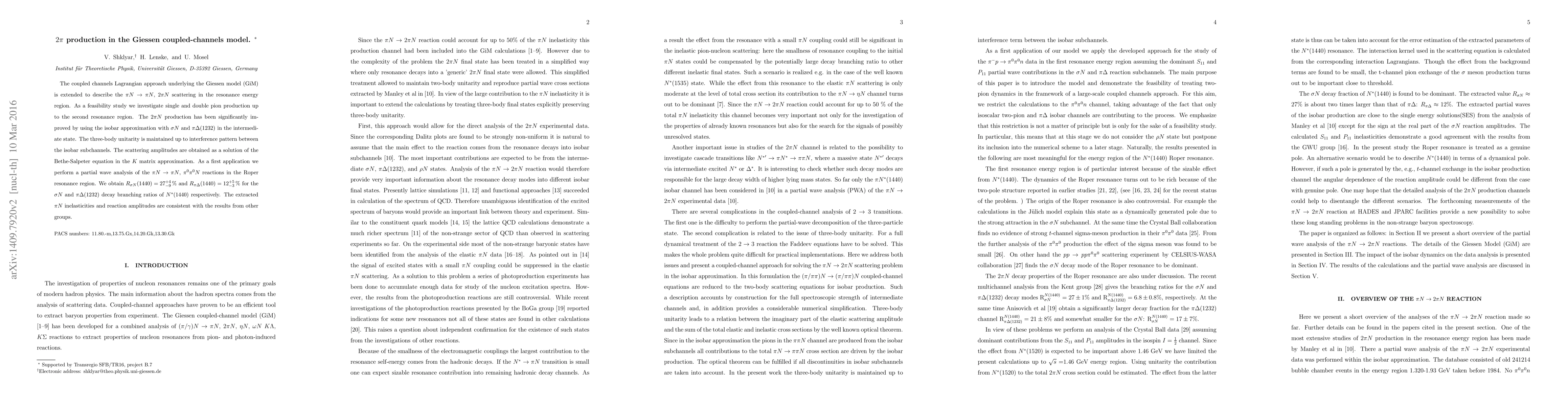 We present a coupled-channel Lagrangian approach (GiM) to describe the $\pi N \to \pi N$, $2\pi N$ scattering in the resonance energy region. The $2\pi N$ production has been significantly improved by using the isobar approximation with $\sigma N$ and $\pi \Delta(1232)$ in the intermediate state. The three-body unitarity is maintained up to interference pattern between the isobar subchannels. The scattering amplitudes are obtained as a solution of the Bethe-Salpeter equation in the $K$ matrix approximation. As a first application we perform a partial wave analysis of the $\pi N \to \pi N$, $\pi^0\pi^0 N$ reactions in the Roper resonance region. We obtain $R_{\sigma N}(1440)=27^{+4}_{-9}$\,\% and $R_{\sigma N}(1440)=12^{+5}_{-3}$\,\% for the $\sigma N$ and $\pi \Delta$ decay branching ratios of $N^*(1440)$ respectively. The extracted $\pi N$ inelasticities and reaction amplitudes are consistent with the results from other groups.