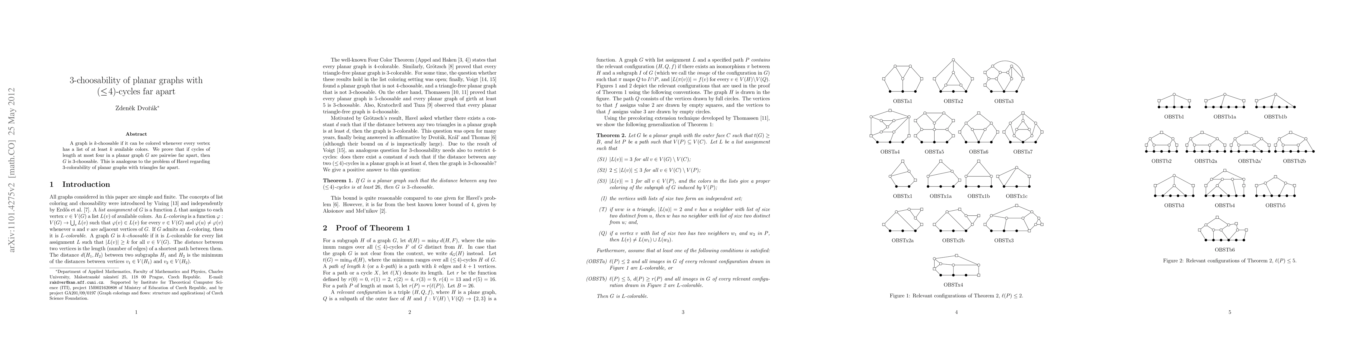 Summary: This paper proves that planar graphs with cycles of length at most four that are sufficiently separated are 3-choosable, analogous to Havel's theorem on 3-colorability of planar graphs with distant triangles. The result extends the concept of choosability to graphs with specific cycle constraints.