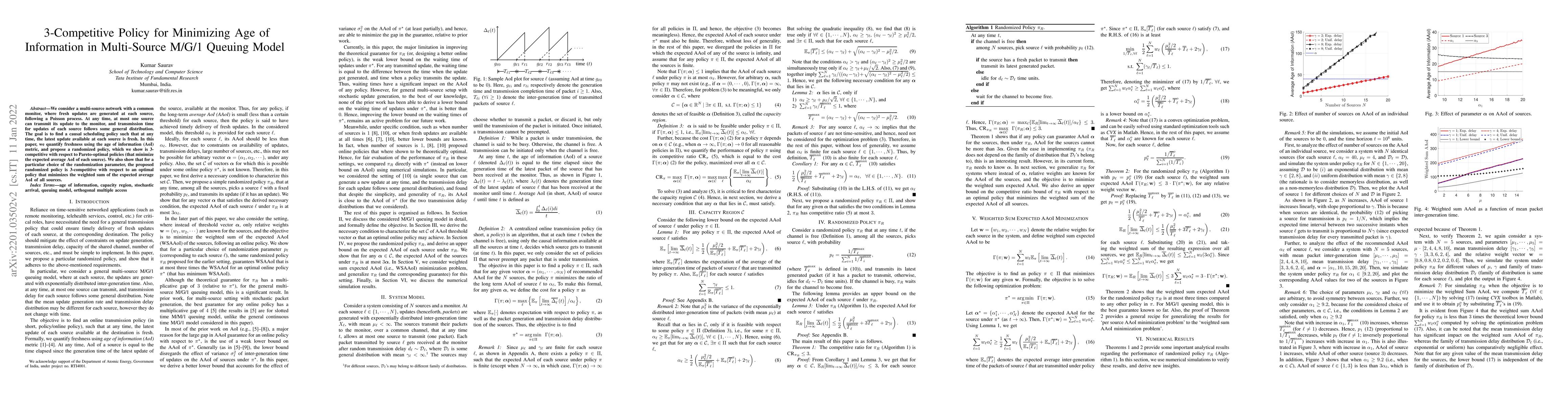 We consider a multi-source network with a common monitor, where fresh updates are generated at each source, following a Poisson process. At any time, at most one source can transmit its update to the monitor, and transmission time for updates of each source follows some general distribution. The goal is to find a causal scheduling policy such that at any time, the latest update available at each source is fresh. In this paper, we quantify freshness using the age of information (AoI) metric, and propose a randomized policy, which we show is 3-competitive with respect to Pareto-optimal policies (that minimize the expected average AoI of each source). We also show that for a particular choice of the randomization parameter, the proposed randomized policy is 3-competitive with respect to an optimal policy that minimizes the weighted sum of the expected average AoI of all sources.