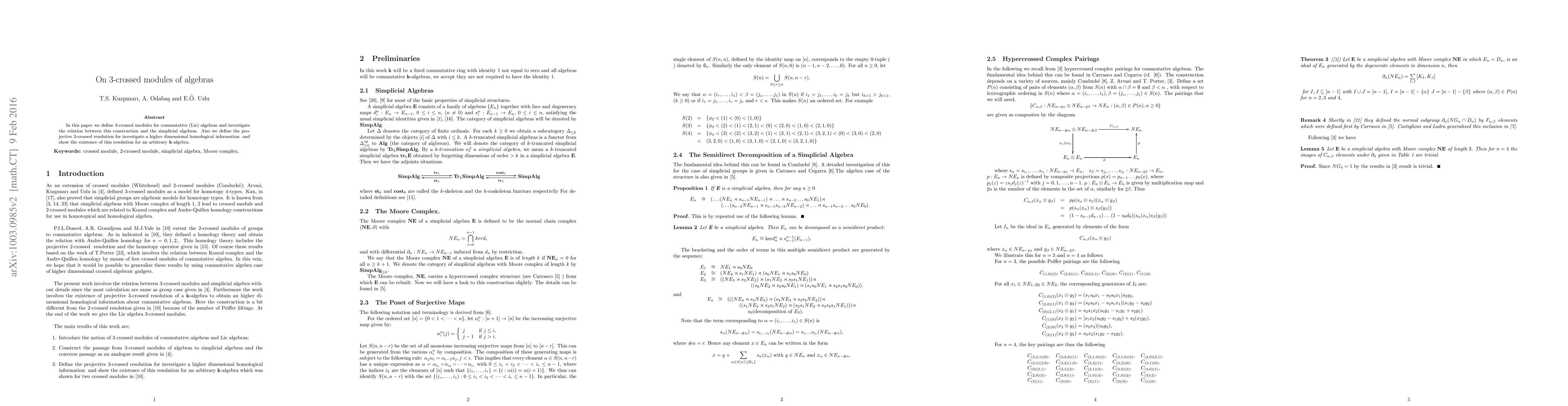 This paper defines 3-crossed modules for commutative (Lie) algebras and explores their connections to simplicial algebras. It also introduces the projective 3-crossed resolution to obtain higher-dimensional homological information and proves its existence for any $\mathbf{k}$-algebra.