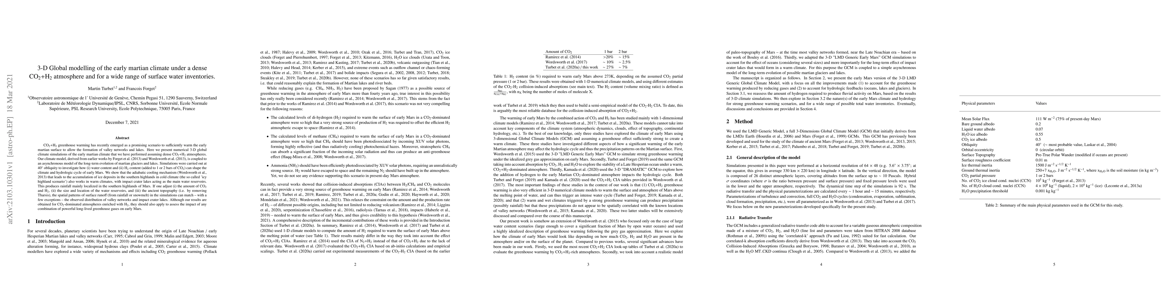 This paper presents 3-D global climate simulations of early Mars under dense CO2+H2 atmospheres, showing how varying water content and H2 levels can shape the planet's climate and hydrologic cycle, ultimately matching the observed distribution of valley networks and lakes. The study suggests that powerful greenhouse gases could significantly influence early Martian climate and hydrology.