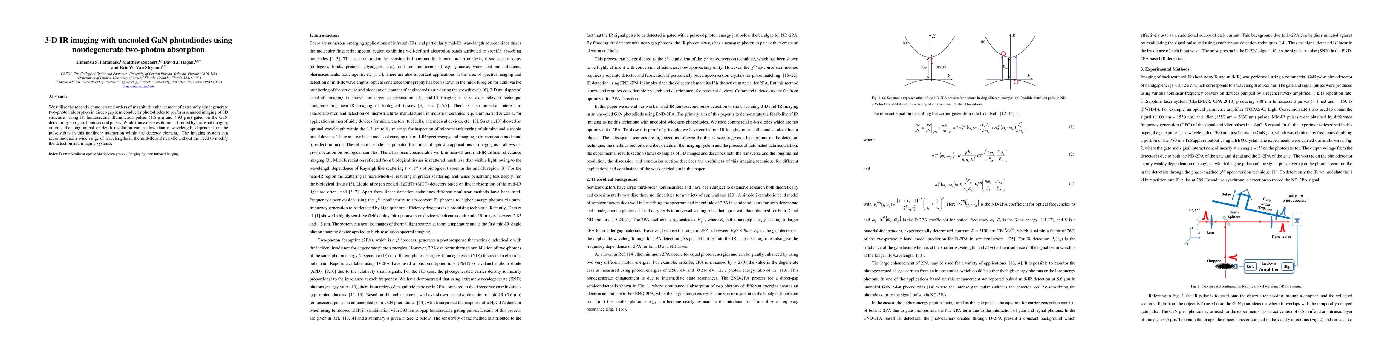 We utilize the recently demonstrated orders of magnitude enhancement of extremely nondegenerate two-photon absorption in direct-gap semiconductor photodiodes to perform scanned imaging of 3D structures using IR femtosecond illumination pulses (1.6 um and 4.93 um) gated on the GaN detector by sub-gap, femtosecond pulses. While transverse resolution is limited by the usual imaging criteria, the longitudinal or depth resolution can be less than a wavelength, dependent on the pulsewidths in this nonlinear interaction within the detector element. The imaging system can accommodate a wide range of wavelengths in the mid-IR and near-IR without the need to modify the detection and imaging systems.