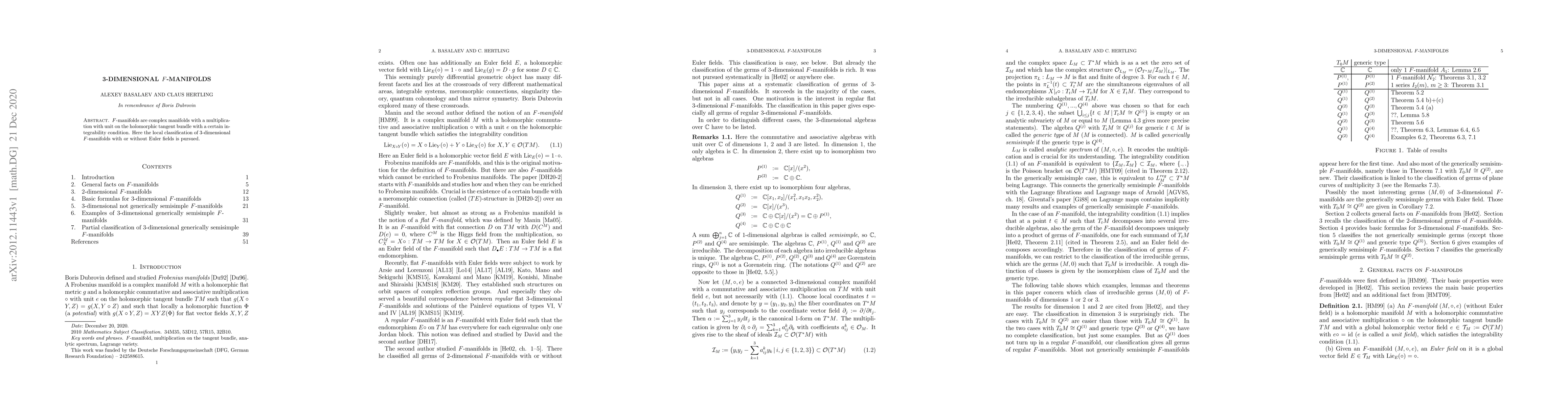 Summary: This paper classifies 3-dimensional F-manifolds based on their holomorphic tangent bundle multiplication with unit and integrability conditions, focusing on those with or without Euler fields.