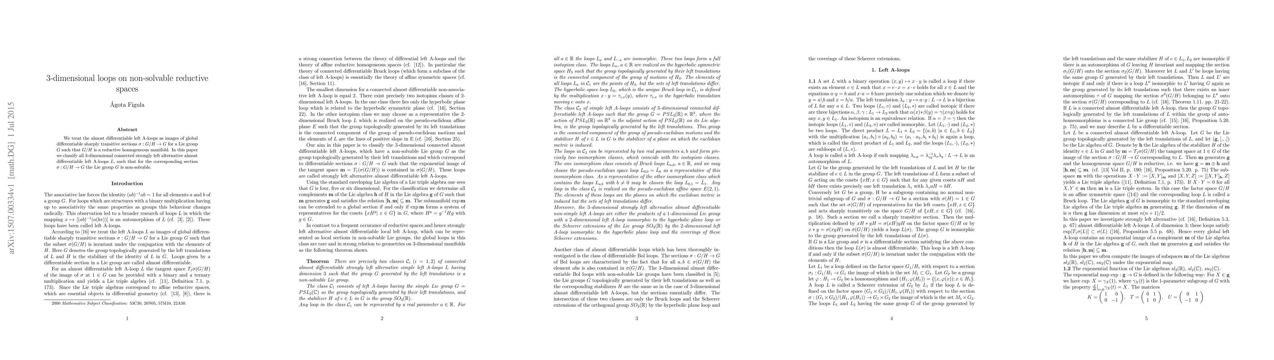 We treat the almost differentiable left A-loops as images of global differentiable sharply transitive sections $\sigma :G/H \to G$ for a Lie group $G$ such that $G/H$ is a reductive homogeneous manifold. In this paper we classify all $3$-dimensional connected strongly left alternative almost differentiable left A-loops $L$, such that for the corresponding section $\sigma :G/H \to G$ the Lie group $G$ is non-solvable.