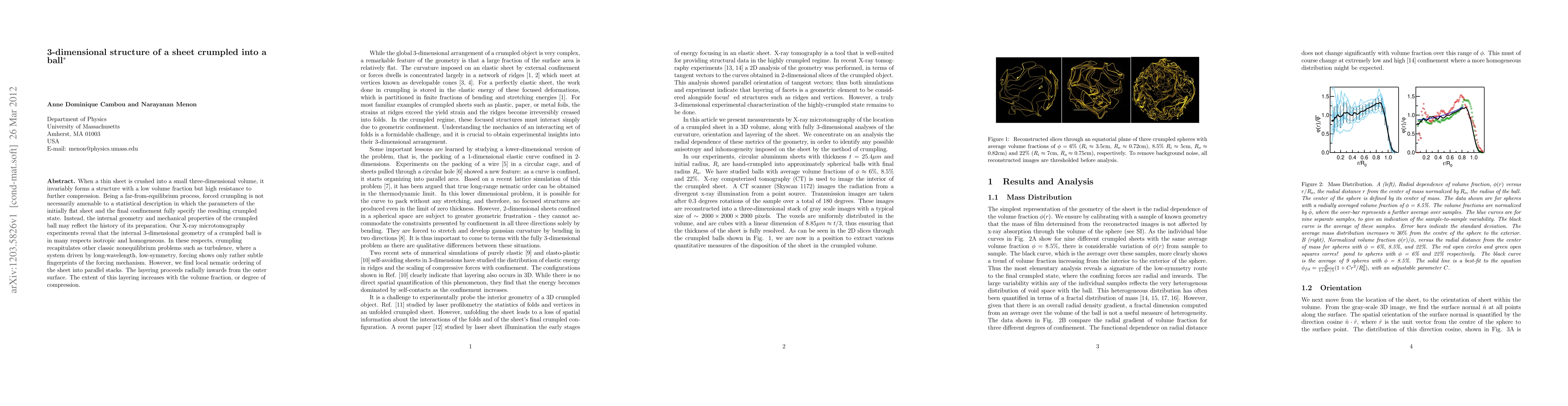 This study investigates the 3-dimensional structure of a crumpled sheet ball, revealing an isotropic and homogeneous internal geometry despite the nonequilibrium nature of the crumpling process. Local nematic ordering into parallel stacks is observed, increasing with the degree of compression.
