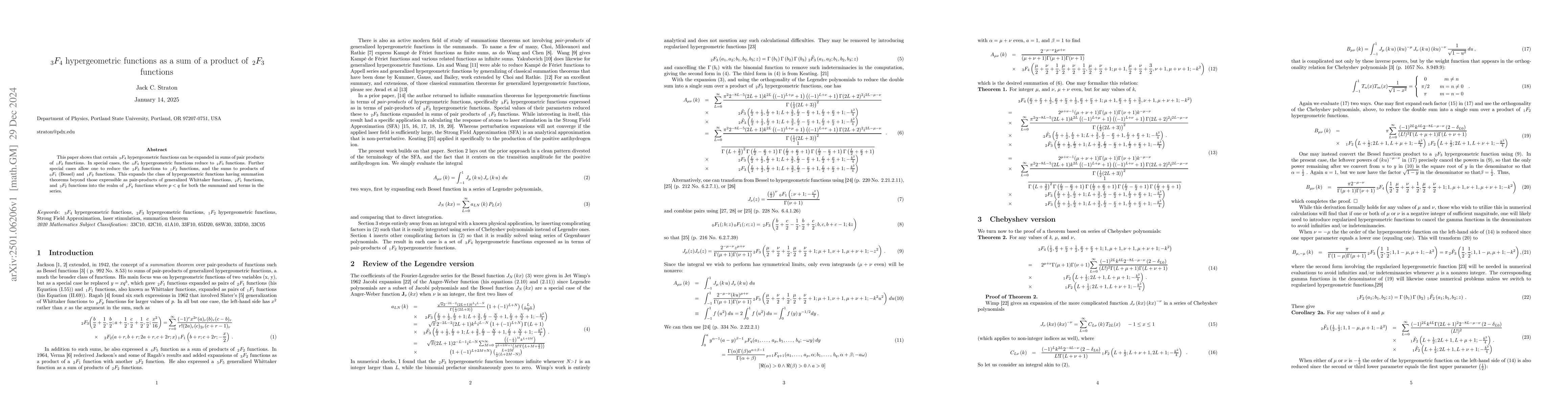 Further special cases allow one to reduce the $\,_{2}F_{3}$ functions to
