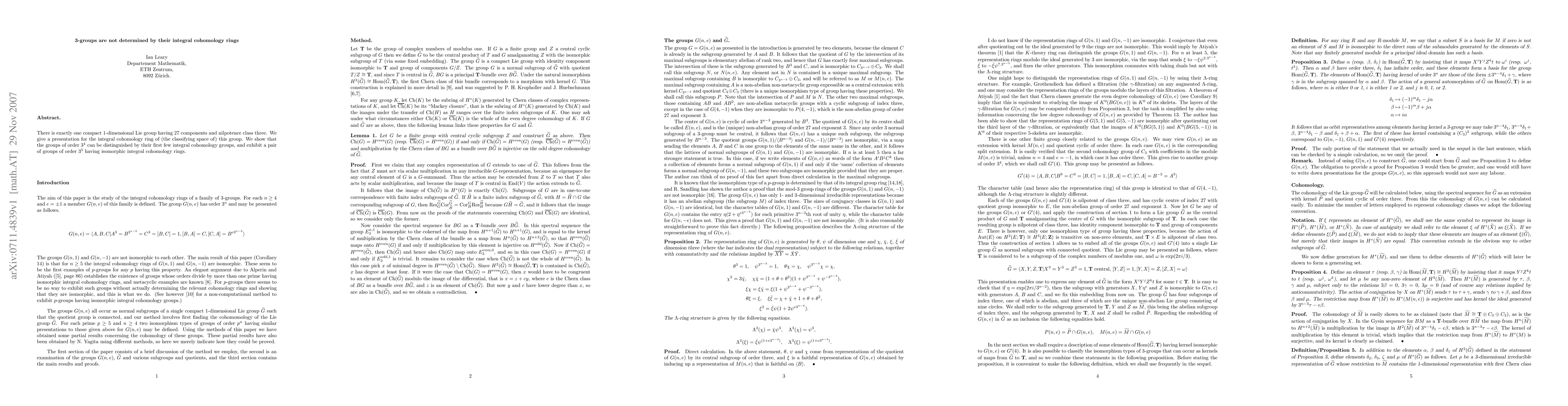 This paper computes the integral cohomology rings of a family of 3-groups and shows that these rings can be isomorphic for different groups of the same order, specifically for groups of order 3^n where n ≥ 5. Thus, integral cohomology rings do not uniquely determine 3-groups.