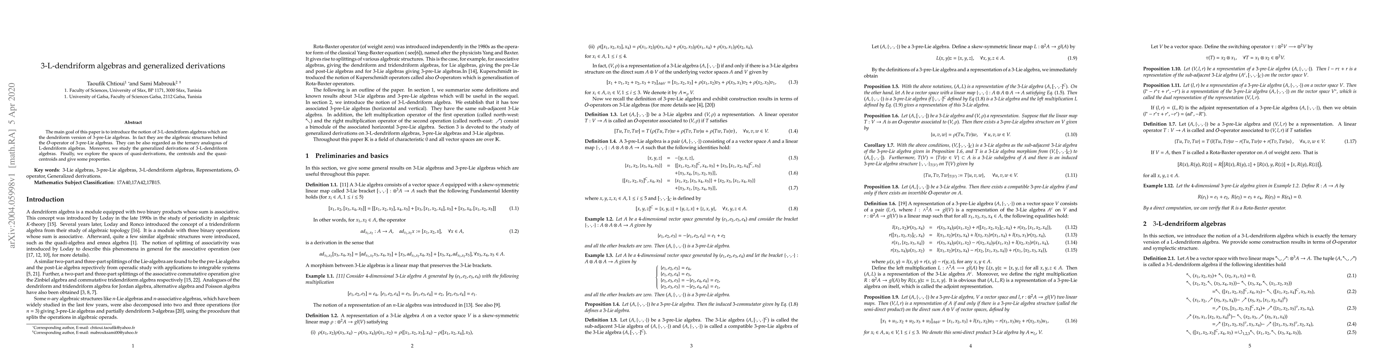 This paper introduces $3$-L-dendriform algebras, a dendriform version of $3$-pre-Lie algebras, and studies their generalized derivations. It also explores quasi-derivations, centroids, and quasi-centroids, providing some structural properties.