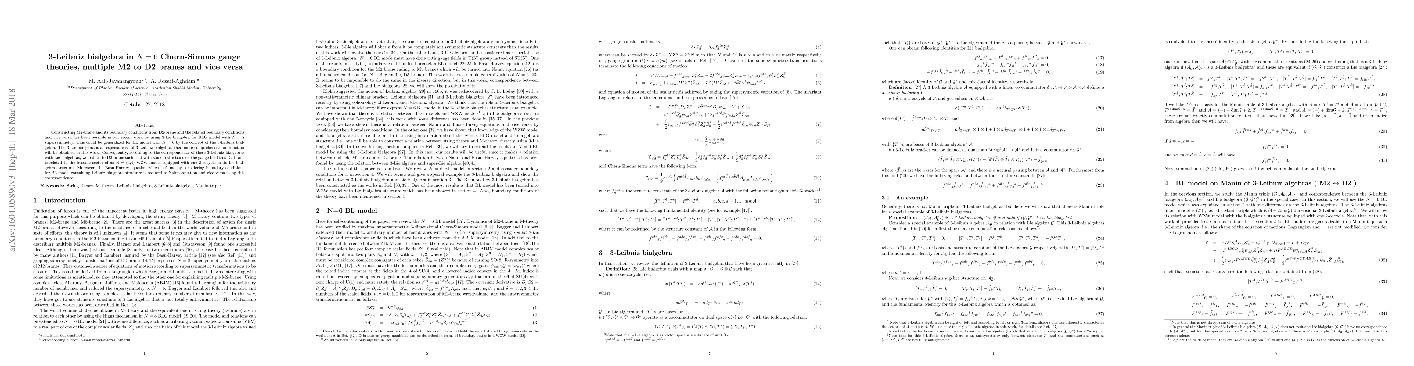 This paper explores the generalization of M2-brane constructions from D2-branes using 3-Leibniz bialgebras in N=6 Chern-Simons gauge theories, revealing a correspondence that links D2-branes to the N=(4,4) WZW model and reduces Basu-Harvey equations to Nahm equations.