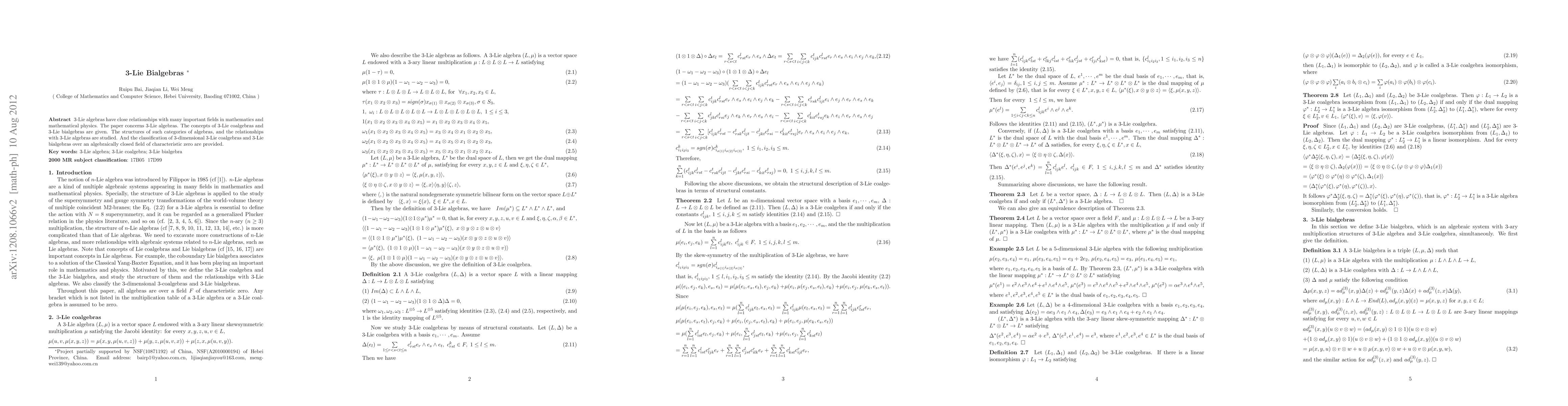 This paper introduces the concepts of 3-Lie coalgebras and 3-Lie bialgebras, explores their structures, and provides a classification of 3-dimensional instances over an algebraically closed field of characteristic zero, highlighting their significance in mathematics and mathematical physics.
