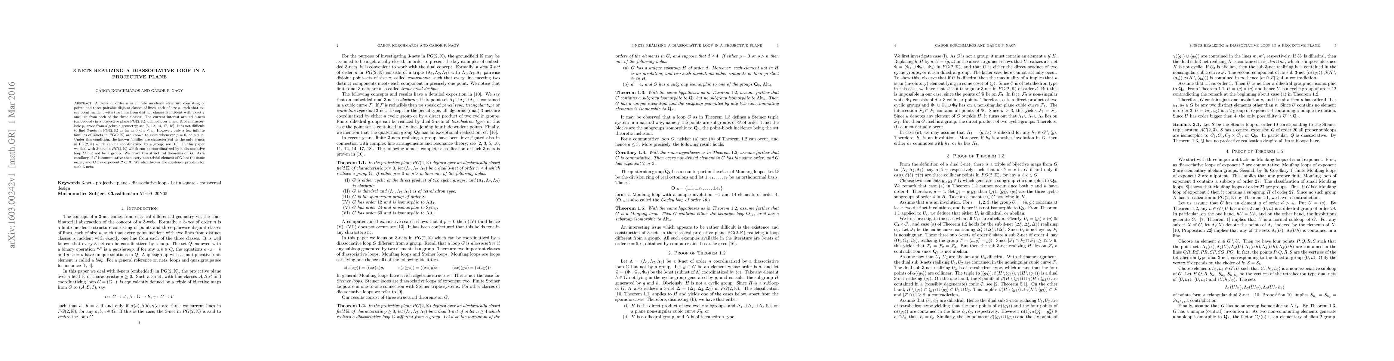 This paper investigates $3$-nets in projective planes $PG(2,K)$ that can be coordinatized by a diassociative loop $G$ but not by a group. The authors prove structural theorems on $G$ and show that if $G$ is commutative, every non-trivial element of $G$ has the same order, and $G$ has exponent $2$ or $3$.
