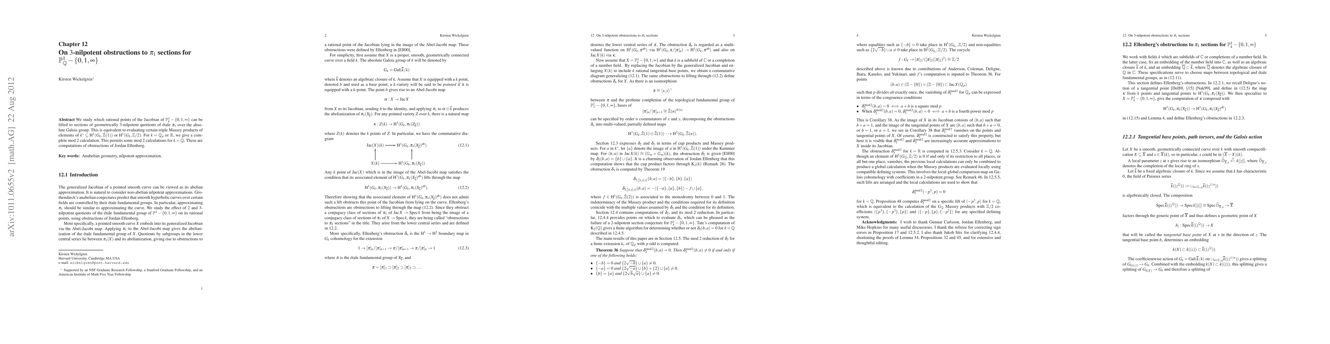 This paper investigates rational points on the Jacobian of P^1_K - {0,1,∞} that can be lifted to sections of geometrically 3-nilpotent quotients of étale fundamental groups, equivalent to evaluating triple Massey products in H^1(G_K). For K=Q_p or R, it provides complete mod 2 calculations, extending to some mod 2 computations for K=Q, addressing Jordan Ellenberg's obstructions.