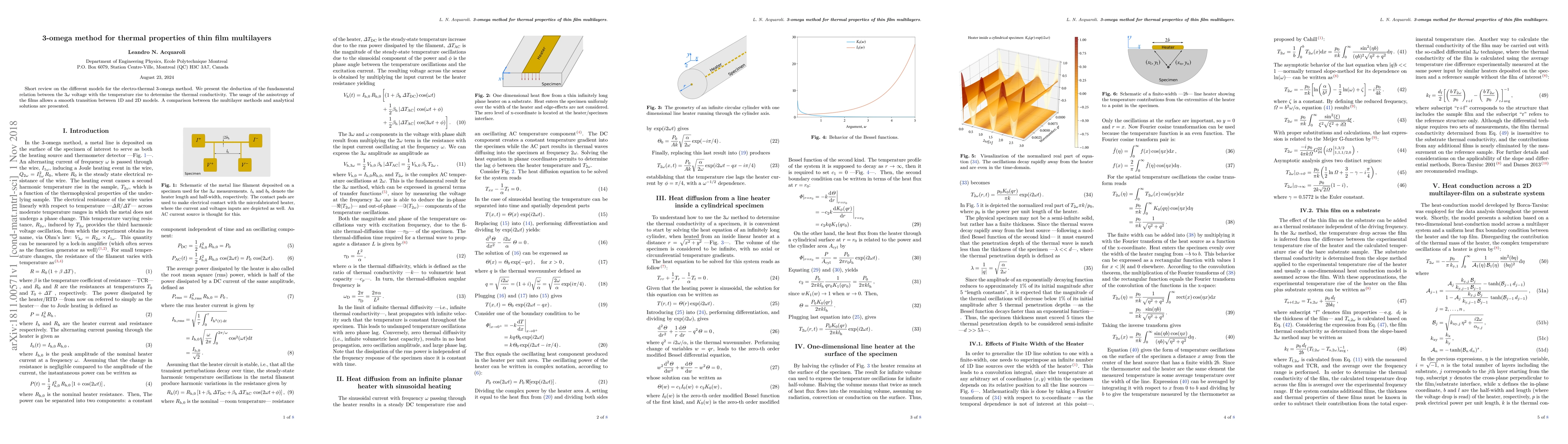 Short review on the different models for the electro-thermal 3-omega method. We present the deduction of the fundamental relation between the 3-omega voltage with the temperature rise to determine the thermal conductivity. The usage of the anisotropy of the films allows a smooth transition between 1D and 2D models. A comparison between the multilayer methods and analytical solutions are presented.