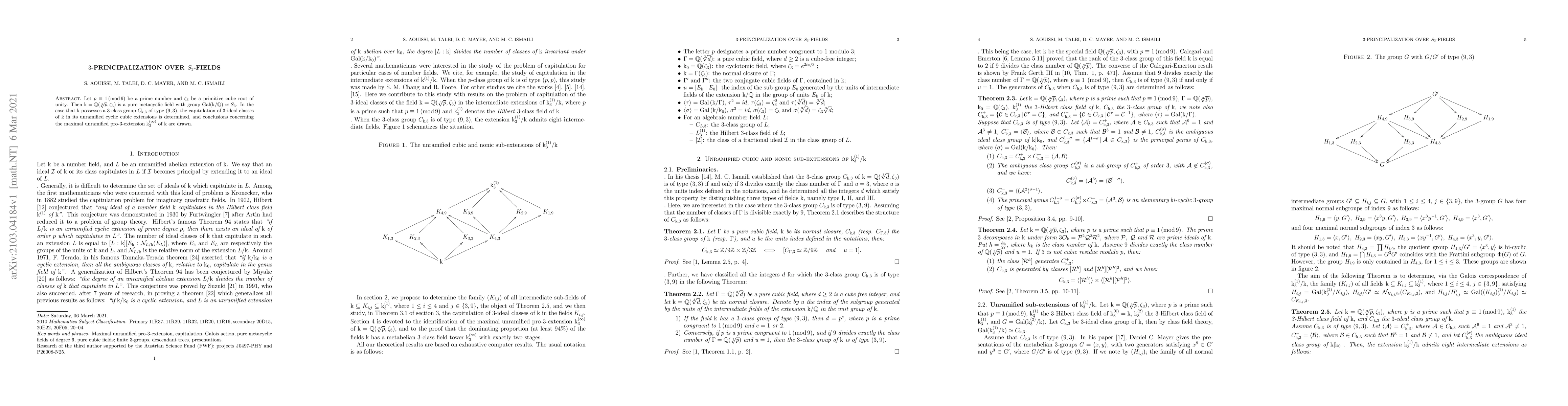 Let $p\equiv 1\,(\mathrm{mod}\,9)$ be a prime number and $\zeta_3$ be a primitive cube root of unity. Then $\mathrm{k}=\mathbb{Q}(\sqrt[3]{p},\zeta_3)$ is a pure metacyclic field with group $\mathrm{Gal}(\mathrm{k}/\mathbb{Q})\simeq S_3$. In the case that $\mathrm{k}$ possesses a $3$-class group $C_{\mathrm{k},3}$ of type $(9,3)$, the capitulation of $3$-ideal classes of $\mathrm{k}$ in its unramified cyclic cubic extensions is determined, and conclusions concerning the maximal unramified pro-$3$-extension $\mathrm{k}_3^{(\infty)}$ of $\mathrm{k}$ are drawn.