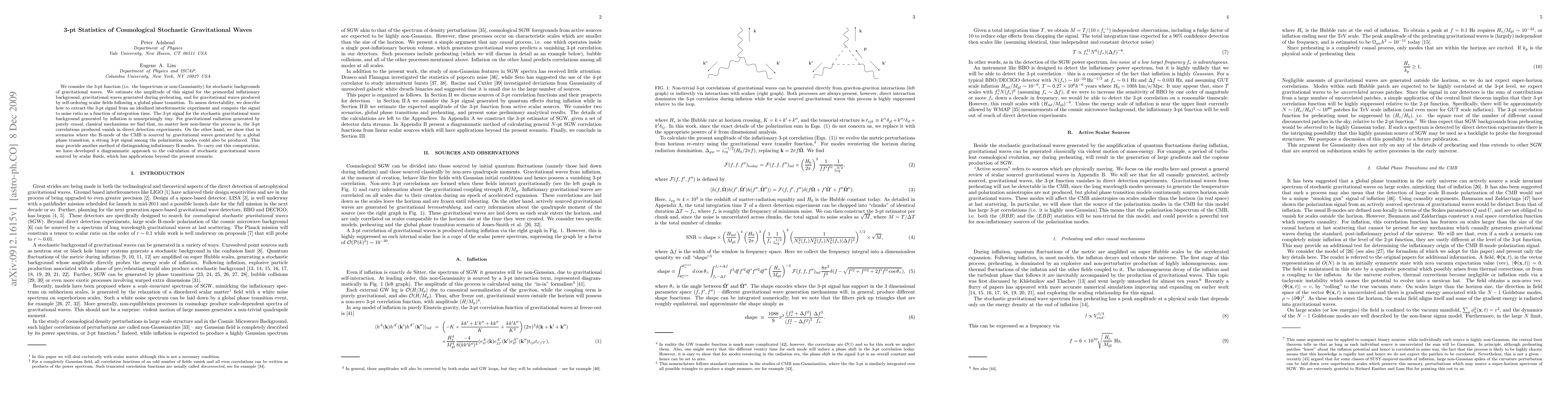 We consider the 3-pt function (i.e. the bispectrum or non-Gaussianity) for stochastic backgrounds of gravitational waves. We estimate the amplitude of this signal for the primordial inflationary background, gravitational waves generated during preheating, and for gravitational waves produced by self-ordering scalar fields following a global phase transition. To assess detectability, we describe how to extract the 3-pt signal from an idealized interferometric experiment and compute the signal to noise ratio as a function of integration time. The 3-pt signal for the stochastic gravitational wave background generated by inflation is unsurprisingly tiny. For gravitational radiation generated by purely causal, classical mechanisms we find that, no matter how non-linear the process is, the 3-pt correlations produced vanish in direct detection experiments. On the other hand, we show that in scenarios where the B-mode of the CMB is sourced by gravitational waves generated by a global phase transition, a strong 3-pt signal among the polarization modes could also be produced. This may provide another method of distinguishing inflationary B-modes. To carry out this computation, we have developed a diagrammatic approach to the calculation of stochastic gravitational waves sourced by scalar fluids, which has applications beyond the present scenario.