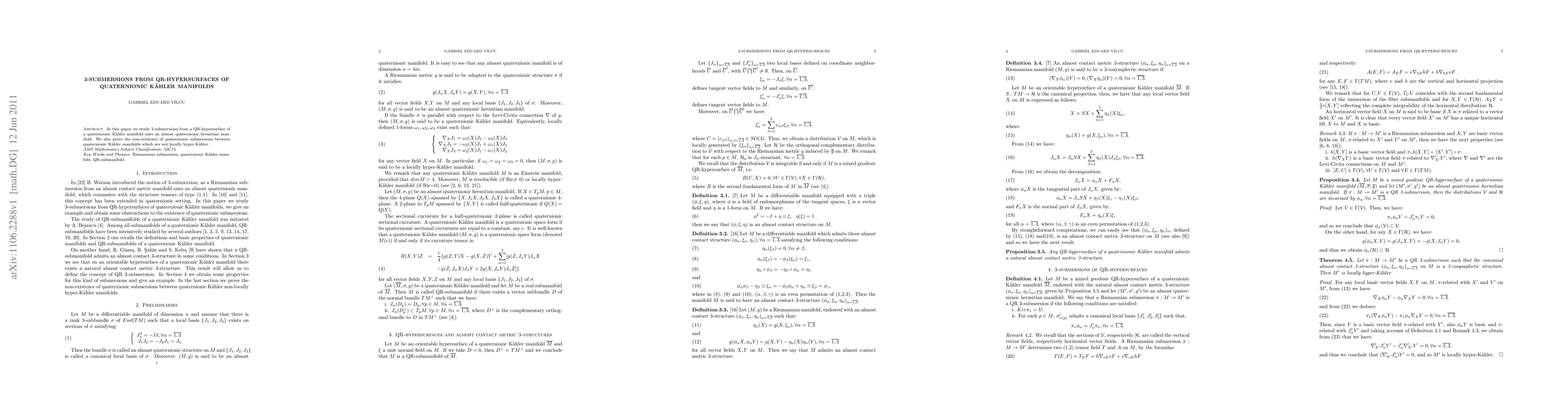 In this paper we study 3-submersions from a QR-hypersurface of a quaternionic Kaehler manifold onto an almost quaternionic hermitian manifold. We also prove the non-existence of quaternionic submersions between quaternionic Kaehler manifolds which are not locally hyper-Kaehler.