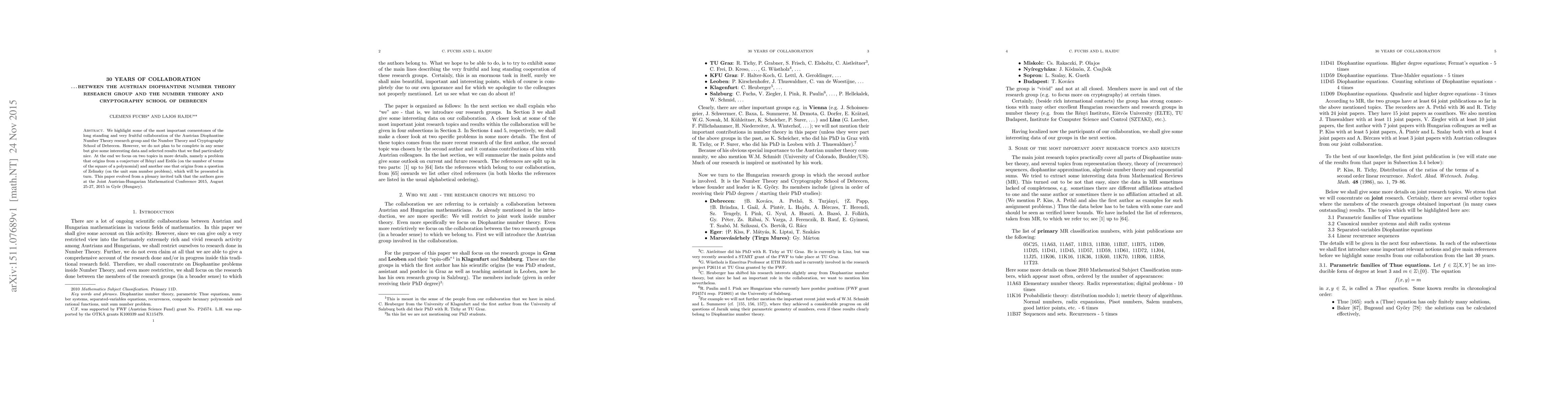 We highlight some of the most important cornerstones of the long standing and very fruitful collaboration of the Austrian Diophantine Number Theory research group and the Number Theory and Cryptography School of Debrecen. However, we do not plan to be complete in any sense but give some interesting data and selected results that we find particularly nice. At the end we focus on two topics in more details, namely a problem that origins from a conjecture of R\'enyi and Erd\H{o}s (on the number of terms of the square of a polynomial) and another one that origins from a question of Zelinsky (on the unit sum number problem), which will be presented in turn. This paper evolved from a plenary invited talk that the authors gave at the Joint Austrian-Hungarian Mathematical Conference 2015, August 25-27, 2015 in Gy\H{o}r (Hungary).