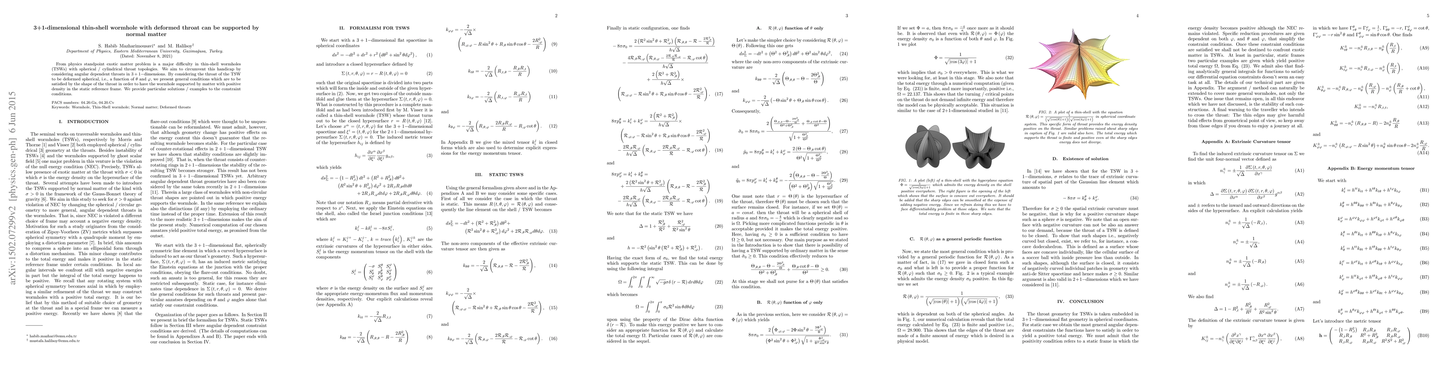This paper explores the possibility of supporting a 3+1-dimensional thin-shell wormhole with a deformed spherical throat using normal matter instead of exotic matter. It presents general conditions for the throat's shape to allow for such support, providing specific examples to illustrate these constraints.
