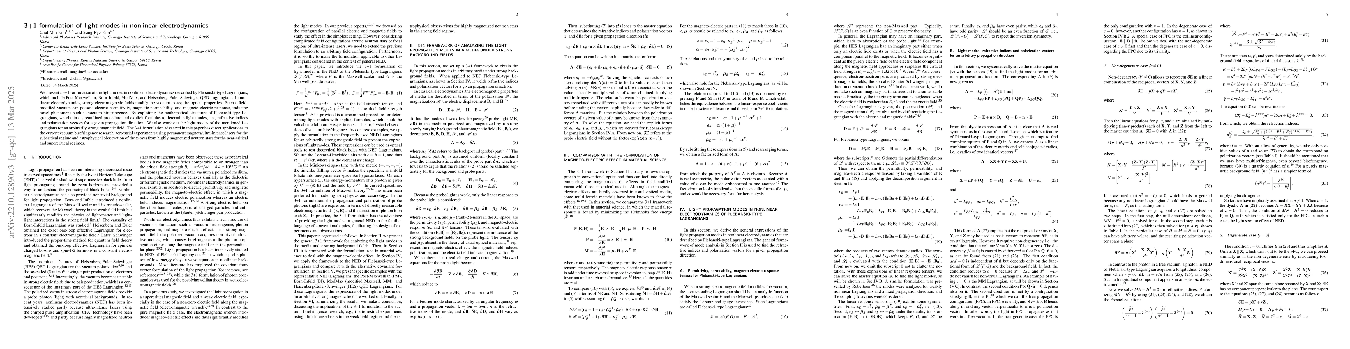This paper investigates light modes in nonlinear electrodynamics, focusing on Plebanski class Lagrangians, and develops a 3+1 formulation for Minkowski spacetime. It finds refractive indices and polarization vectors for various models, revealing vacuum birefringence and multirefringence effects.