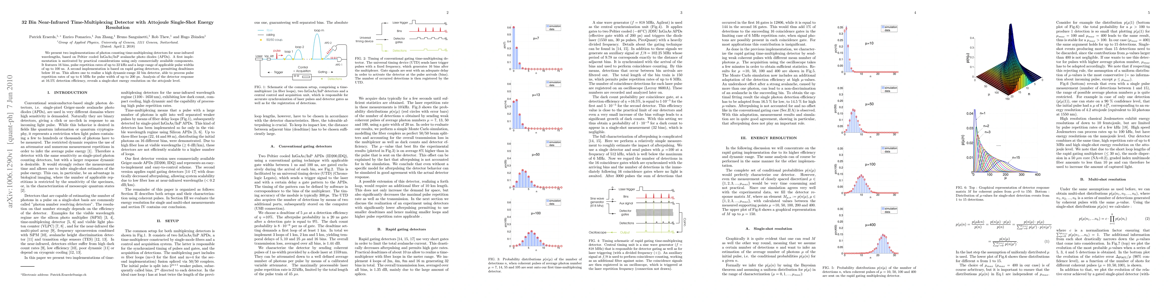 We present two implementations of photon counting time-multiplexing detectors for near-infrared wavelengths, based on Peltier cooled InGaAs/InP avalanche photo diodes (APDs). A first implementation is motivated by practical considerations using only commercially available components. It features 16 bins, pulse repetition rates of up to 22 kHz and a large range of applicable pulse widths of up to 100 ns. A second implementation is based on rapid gating detectors, permitting deadtimes below 10 ns. This allows one to realize a high dynamic-range 32 bin detector, able to process pulse repetition rates of up to 6 MHz for pulse width of up to 200 ps. Analysis of the detector response at 16.5% detection efficiency, reveals a single-shot energy resolution on the attojoule level.