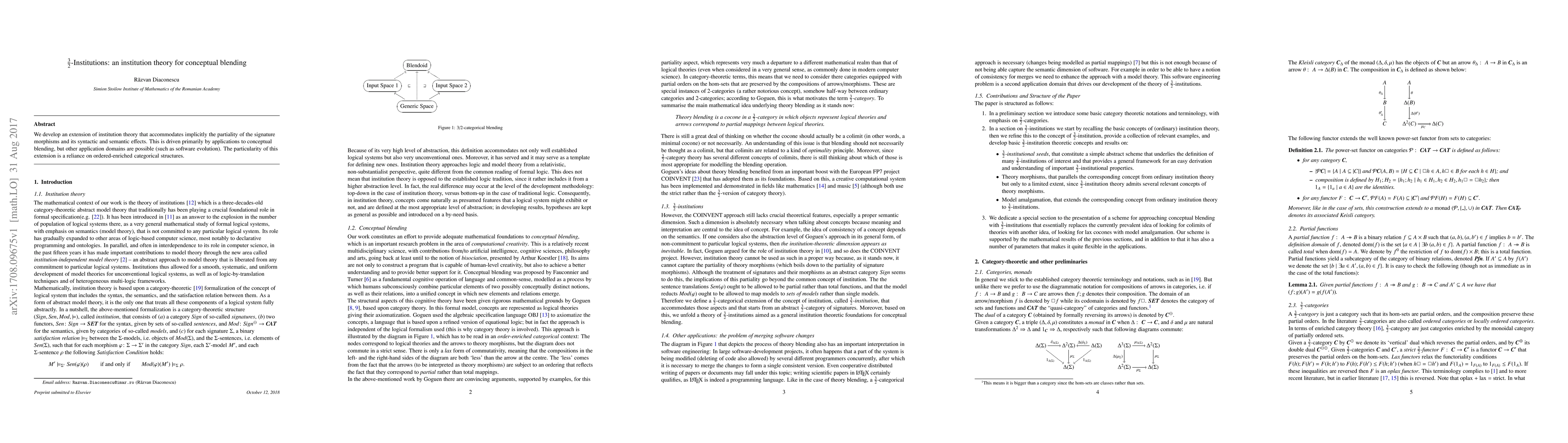 We develop an extension of institution theory that accommodates implicitly the partiality of the signature morphisms and its syntactic and semantic effects. This is driven primarily by applications to conceptual blending, but other application domains are possible (such as software evolution). The particularity of this extension is a reliance on ordered-enriched categorical structures.